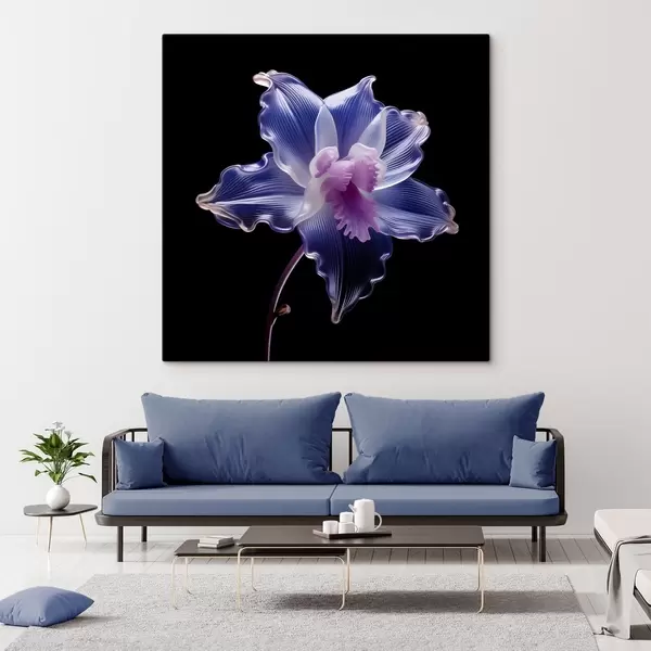 Wandbilder Transluzente Blütenblätter mit Adern auf schwarzem Hintergrund Art. s44347