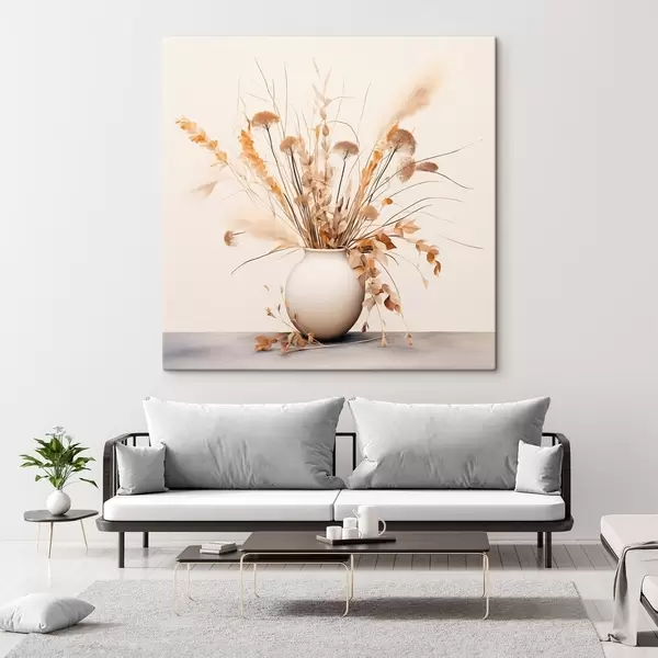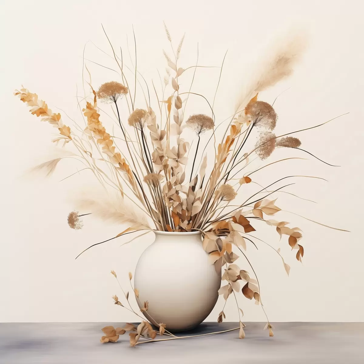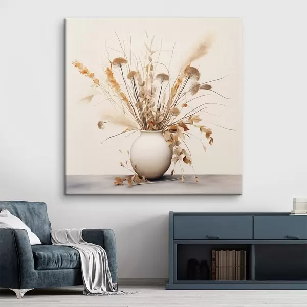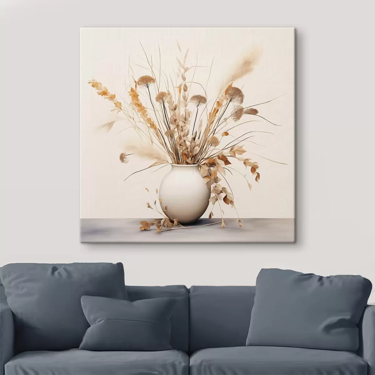 Wandbilder Arrangement aus getrockneten Gräsern und Blumen in einer weißen Vase Art. s44348