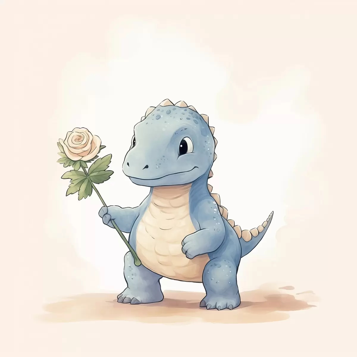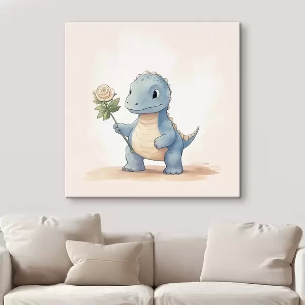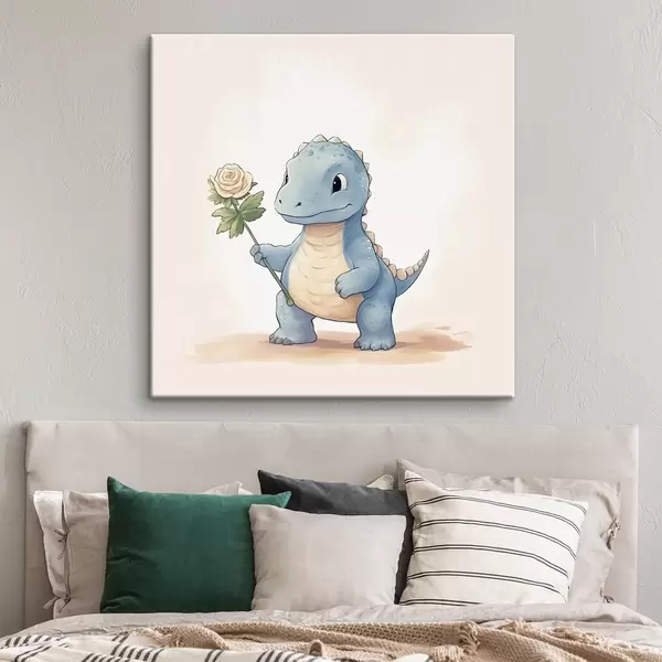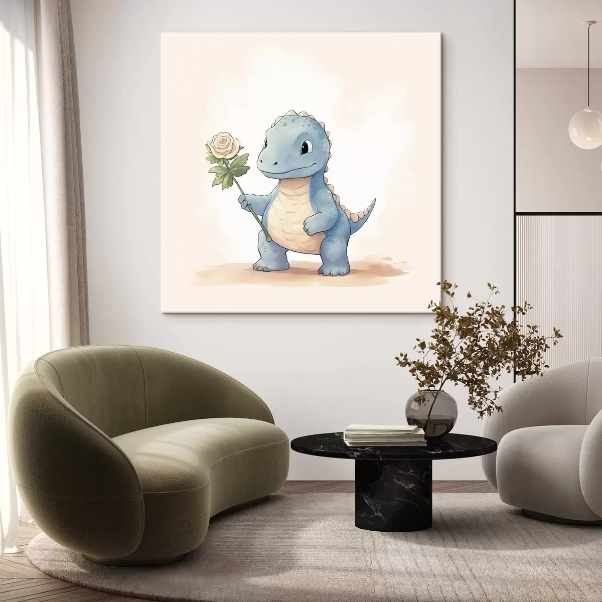 Wandbilder Kleiner Dinosaurier und eine zarte Blume Art. s44351