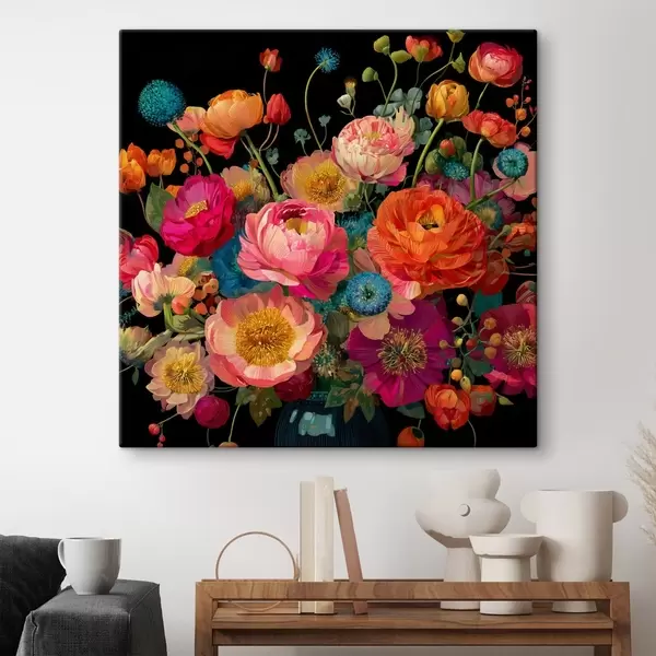 Wandbilder Blumenextravaganz auf schwarzem Hintergrund s44352