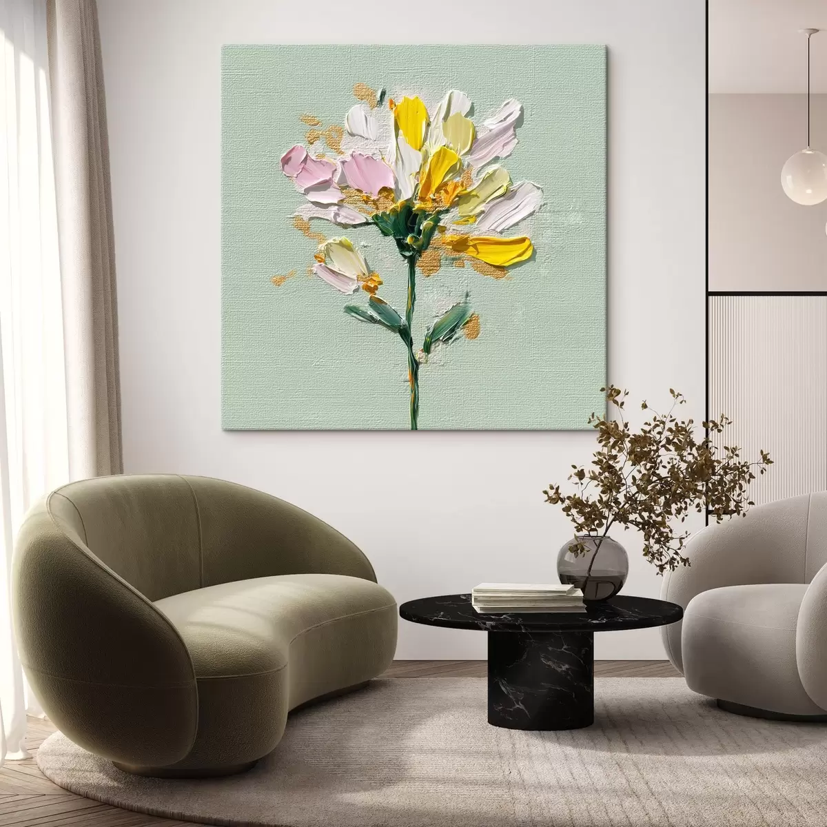 Wandbilder Sonniger Blumenstrauß auf mintfarbenem Hintergrund Art. s44354