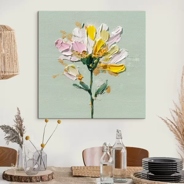 Wandbilder Sonniger Blumenstrauß auf mintfarbenem Hintergrund Art. s44354
