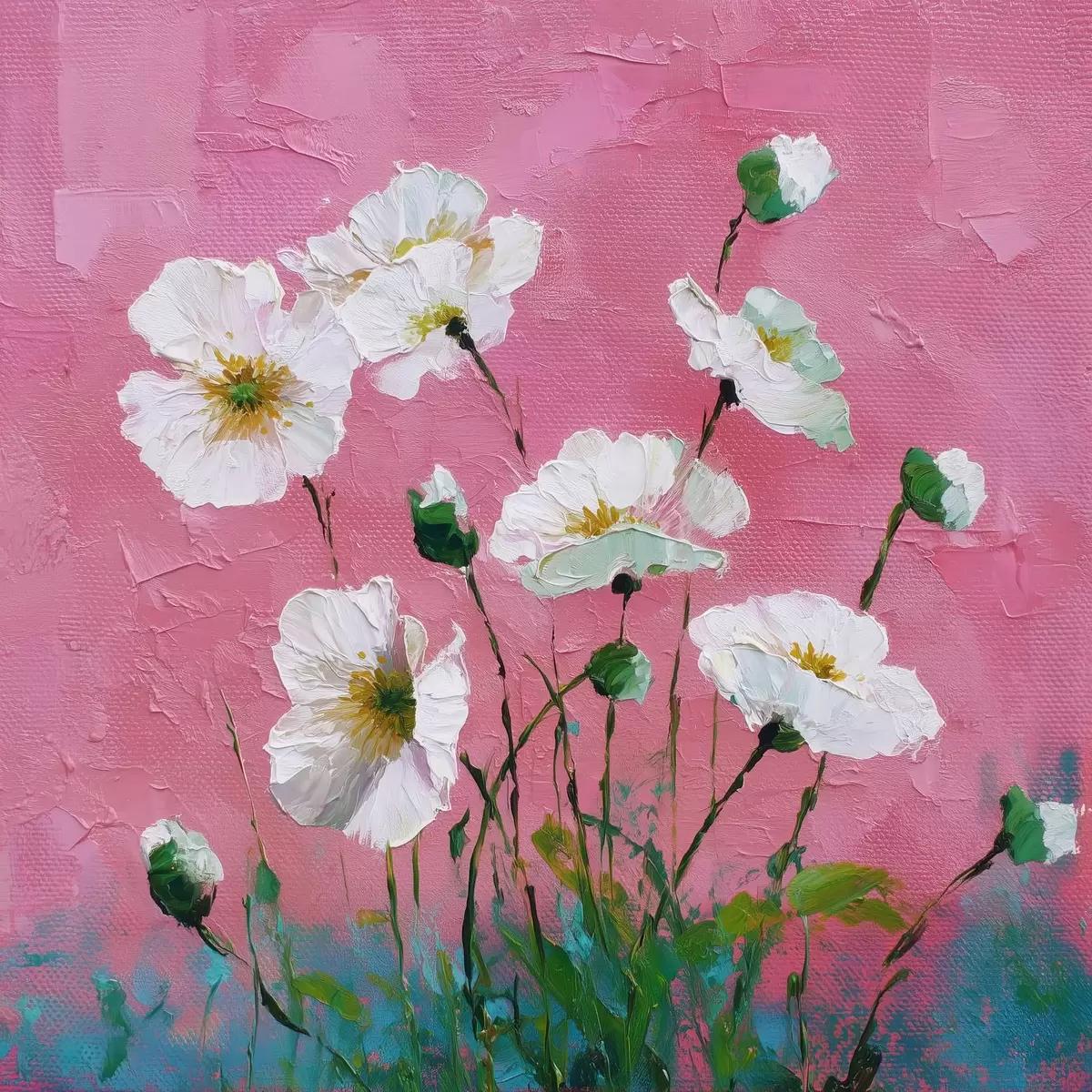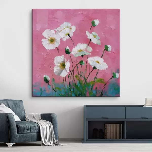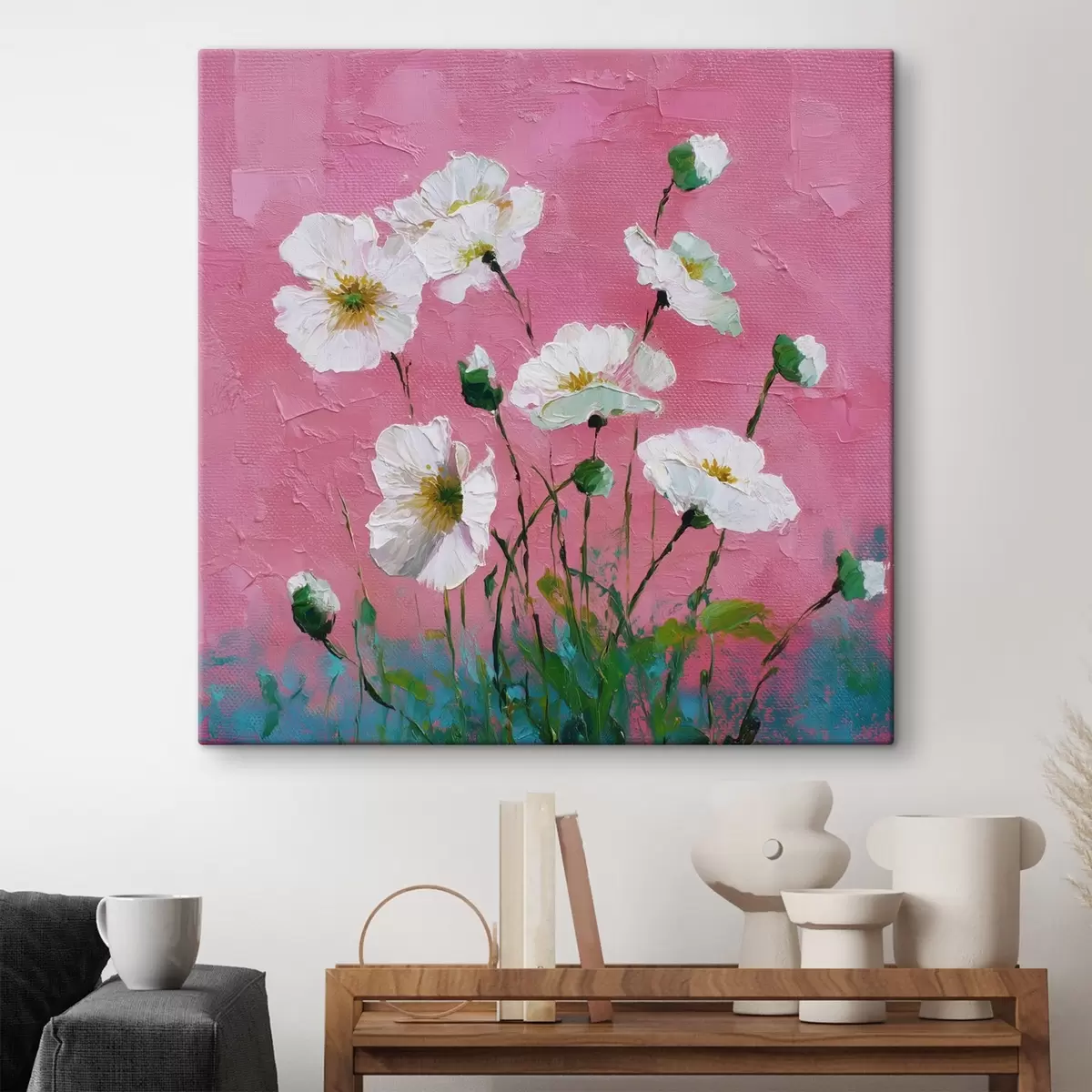 Wandbilder Weiße Blumen auf einem rosa Hintergrund Art. s44360