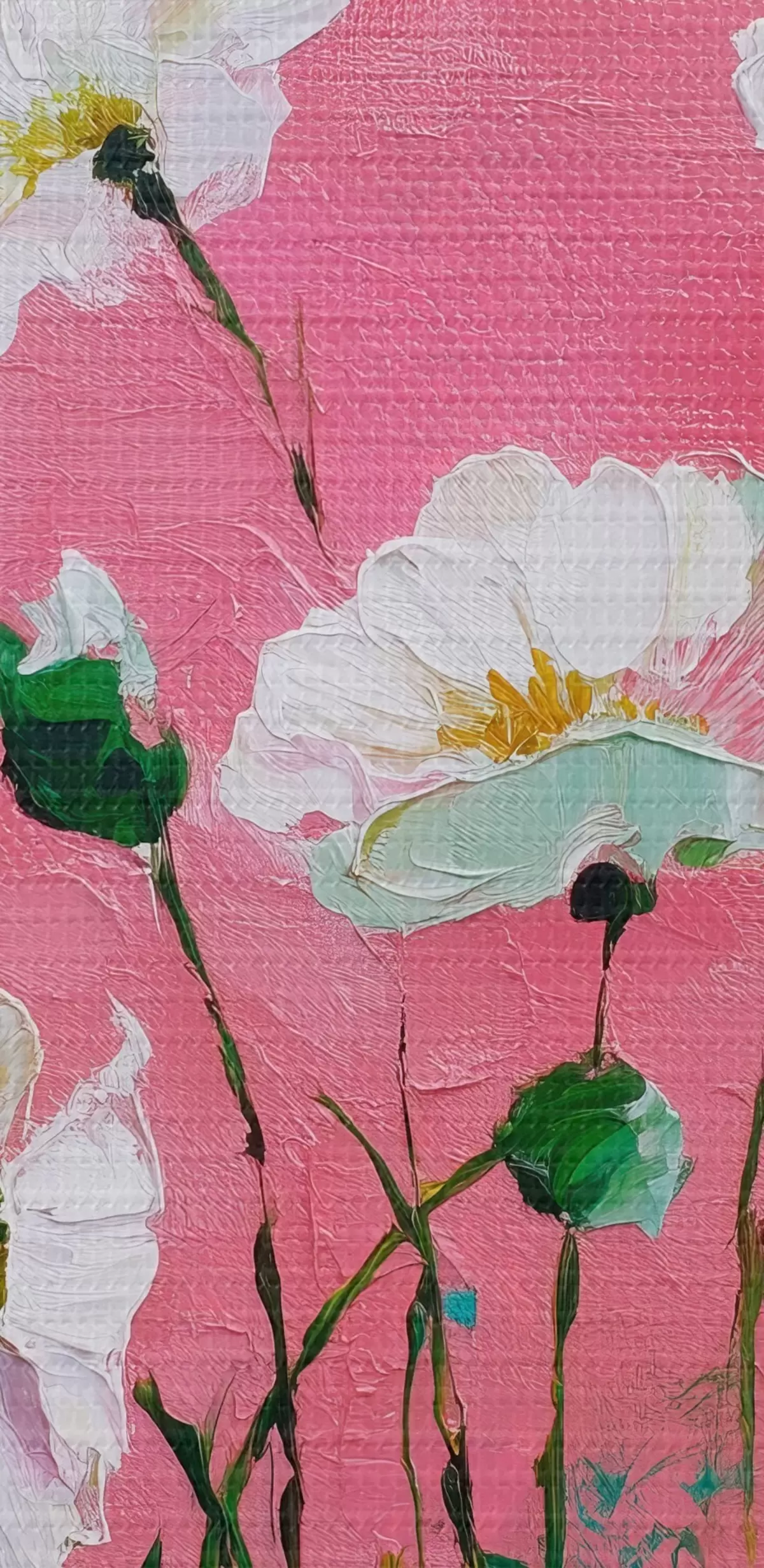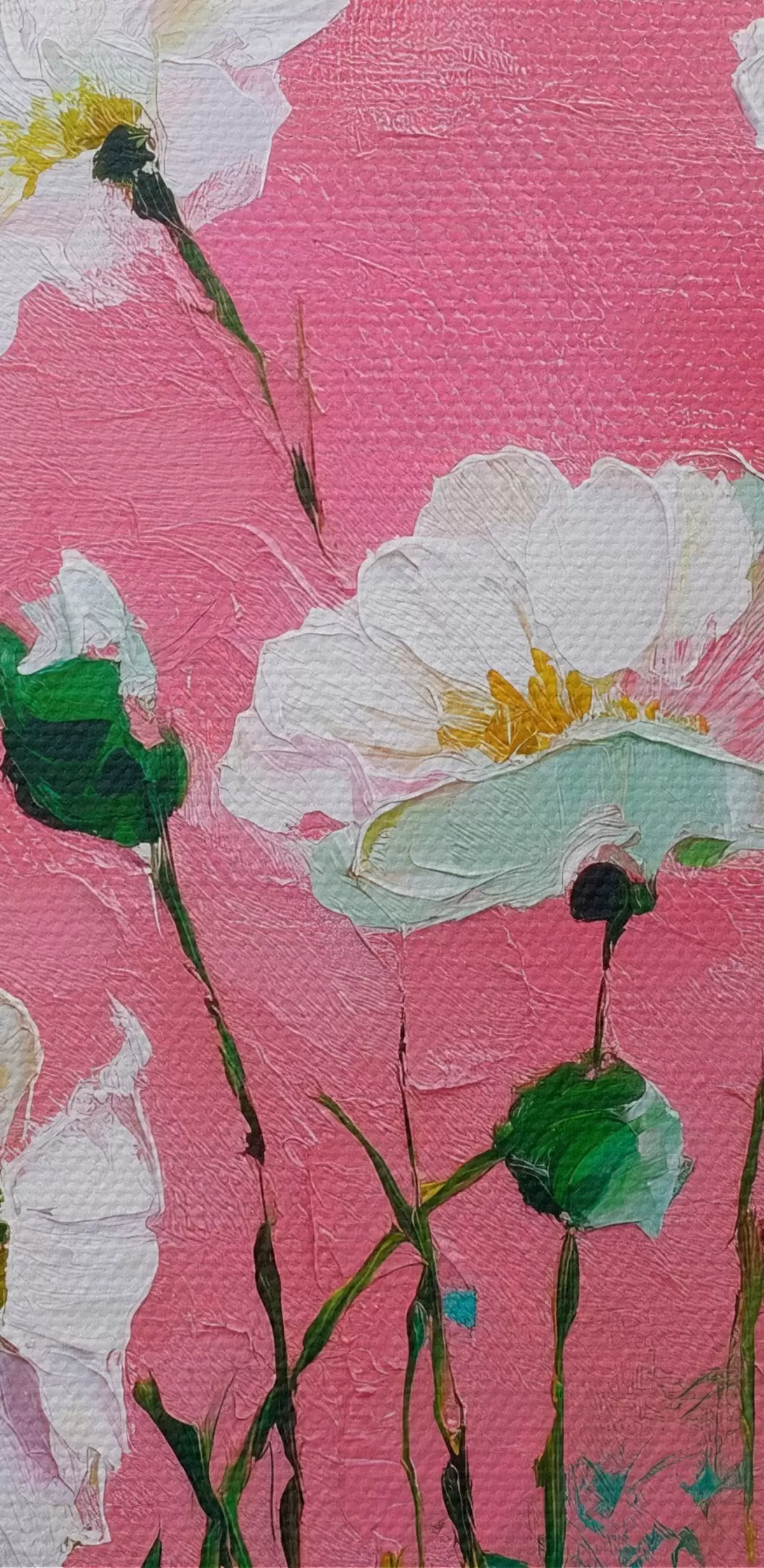 Wandbilder Weiße Blumen auf einem rosa Hintergrund s44360