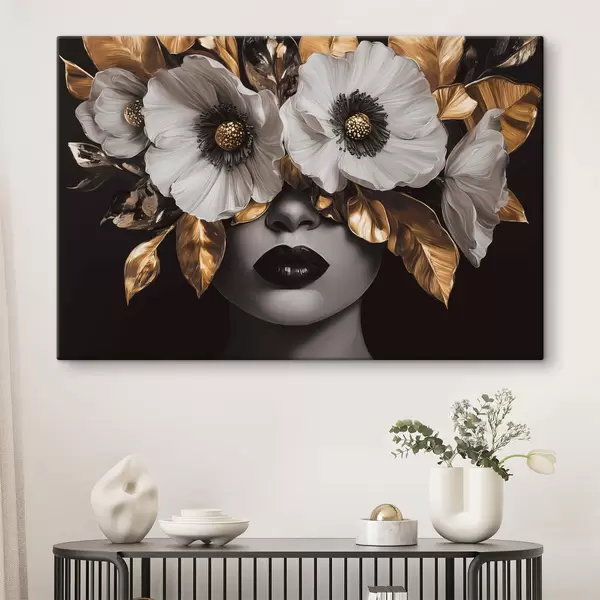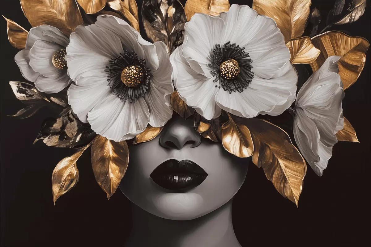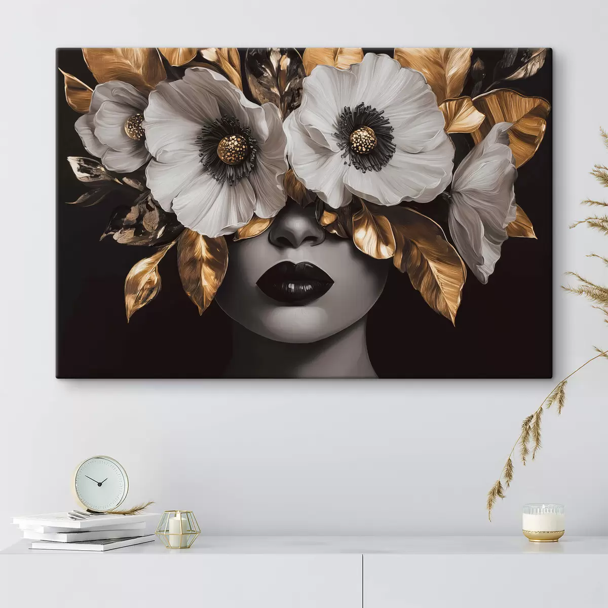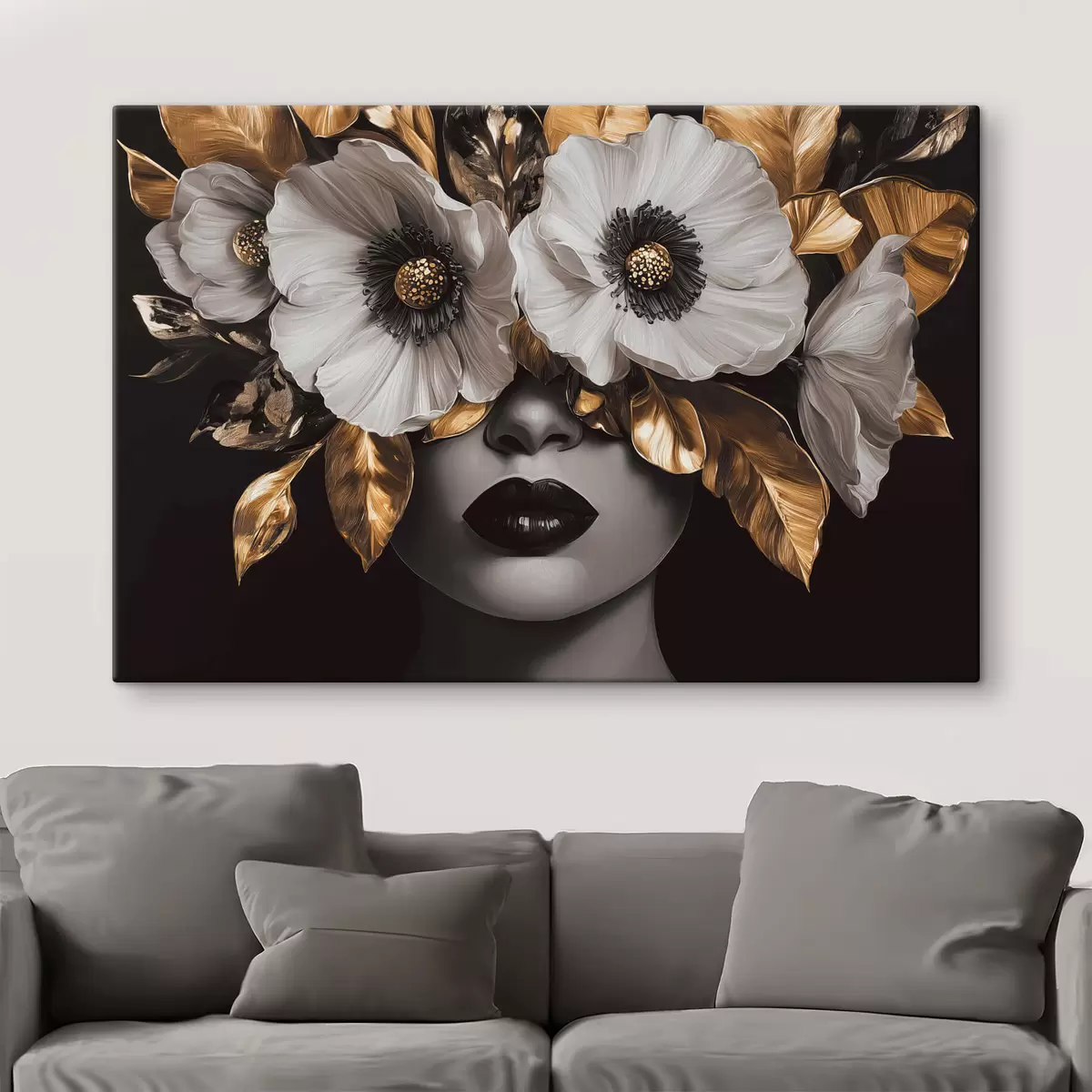 Wandbilder Halbabstraktes Porträt einer Frau mit Blumen s44365