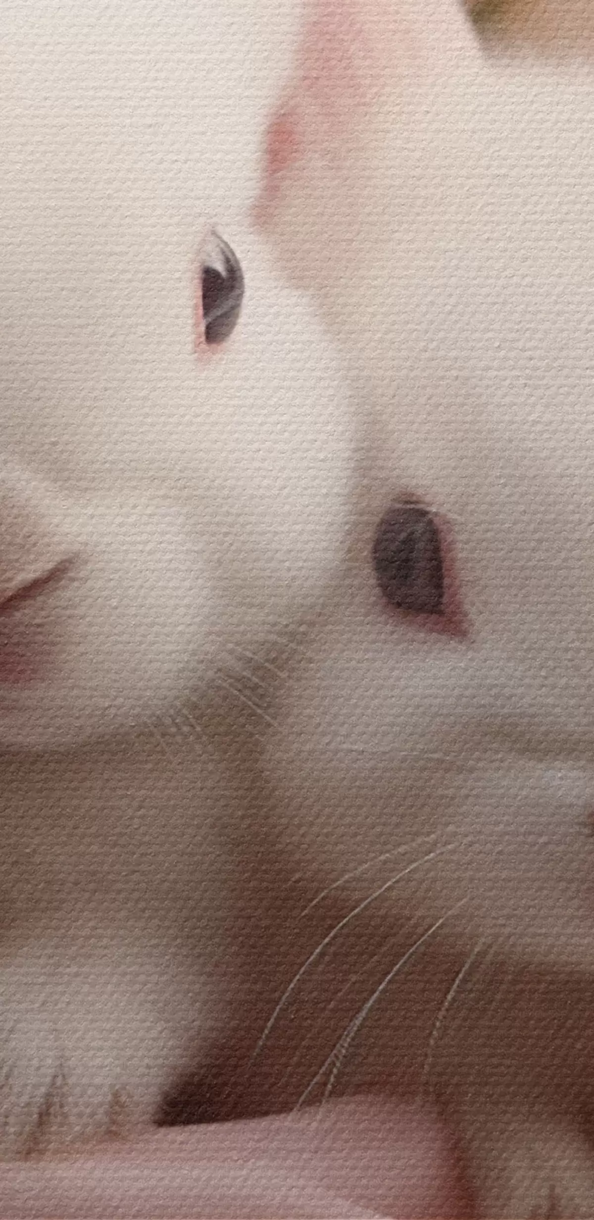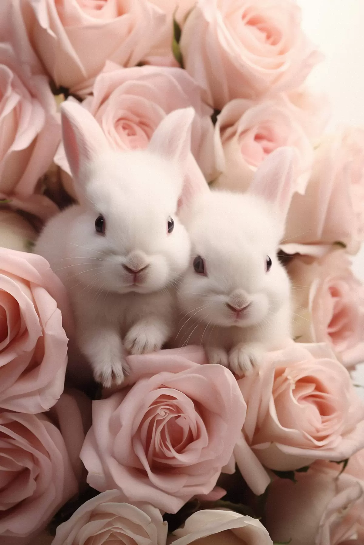 Wandbilder Zwei weiße Kaninchen in zarten Rosenblüten Art. s44380