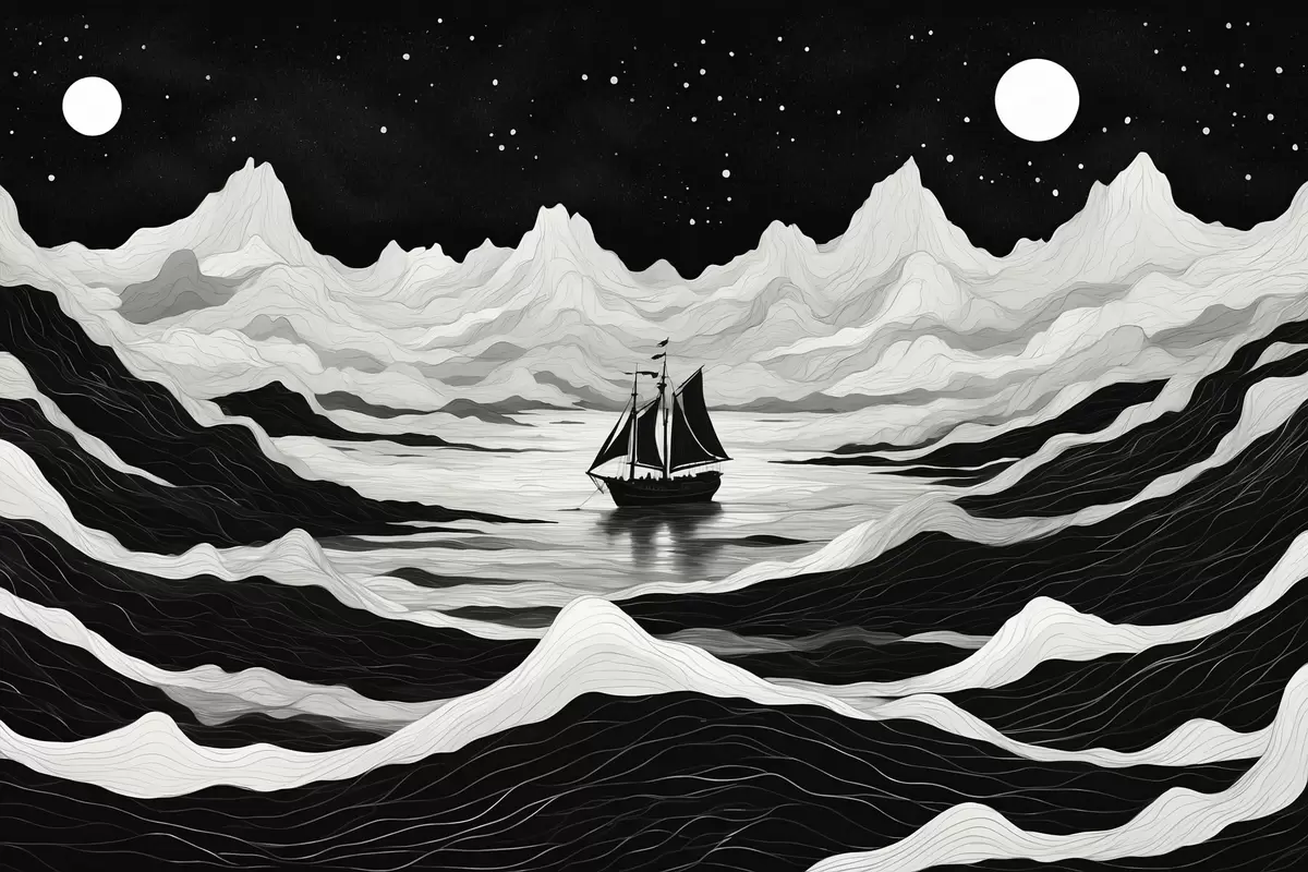 Wandbilder Schiff im nebligen Nachtmeer s44437