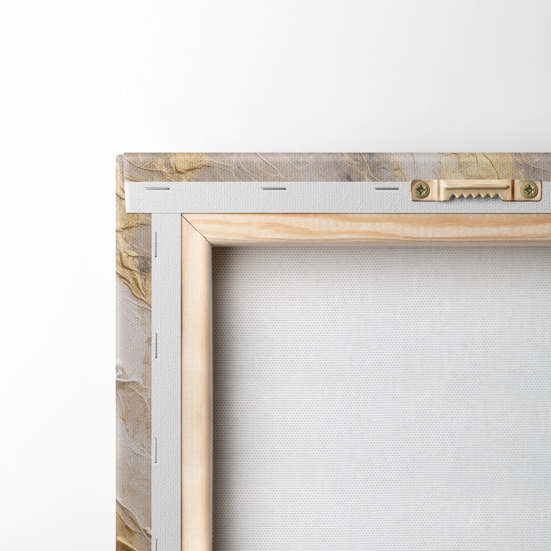 Um die Leinwand auf Keilrahmen zu spannen, ohne das Bild zu beschädigen, verwenden wir ein gespiegeltes Bild.