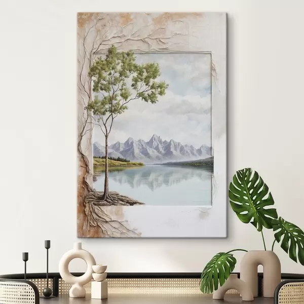 Wandbilder Blick auf den See und verschneite Berge im Rahmen Art. s44458