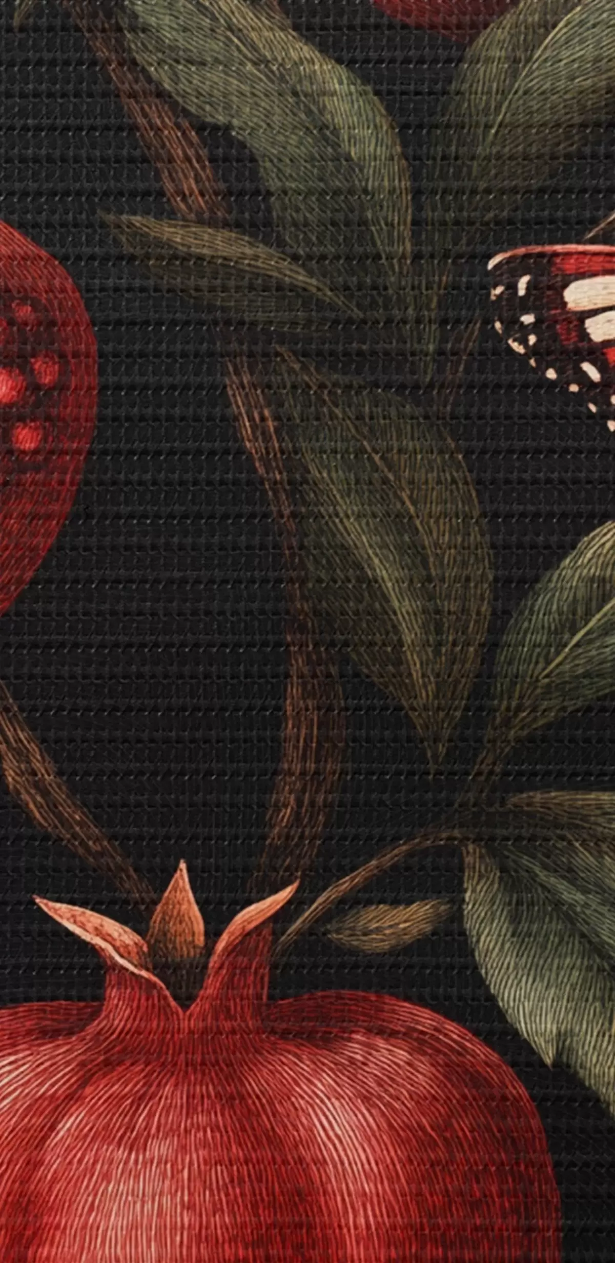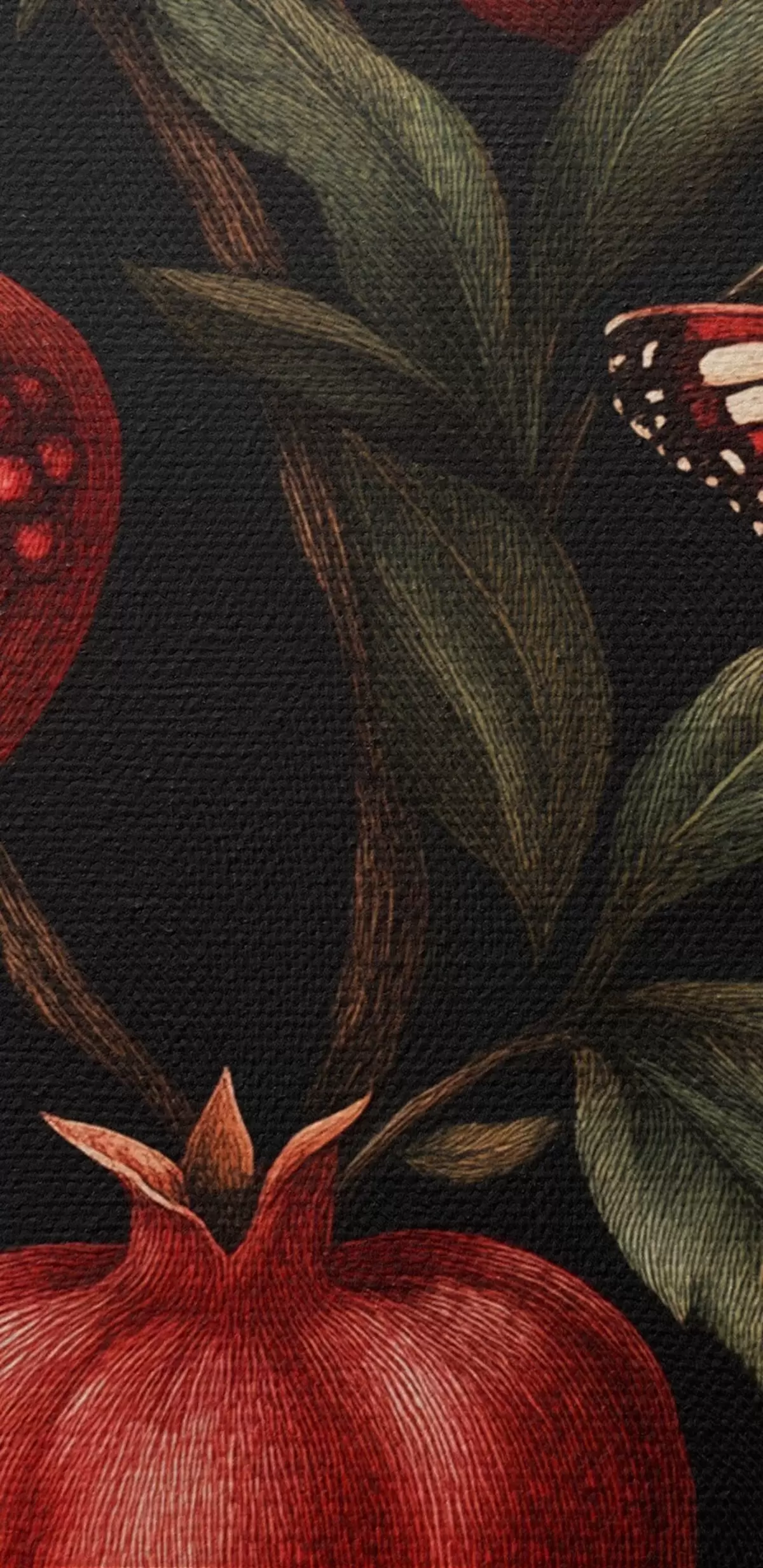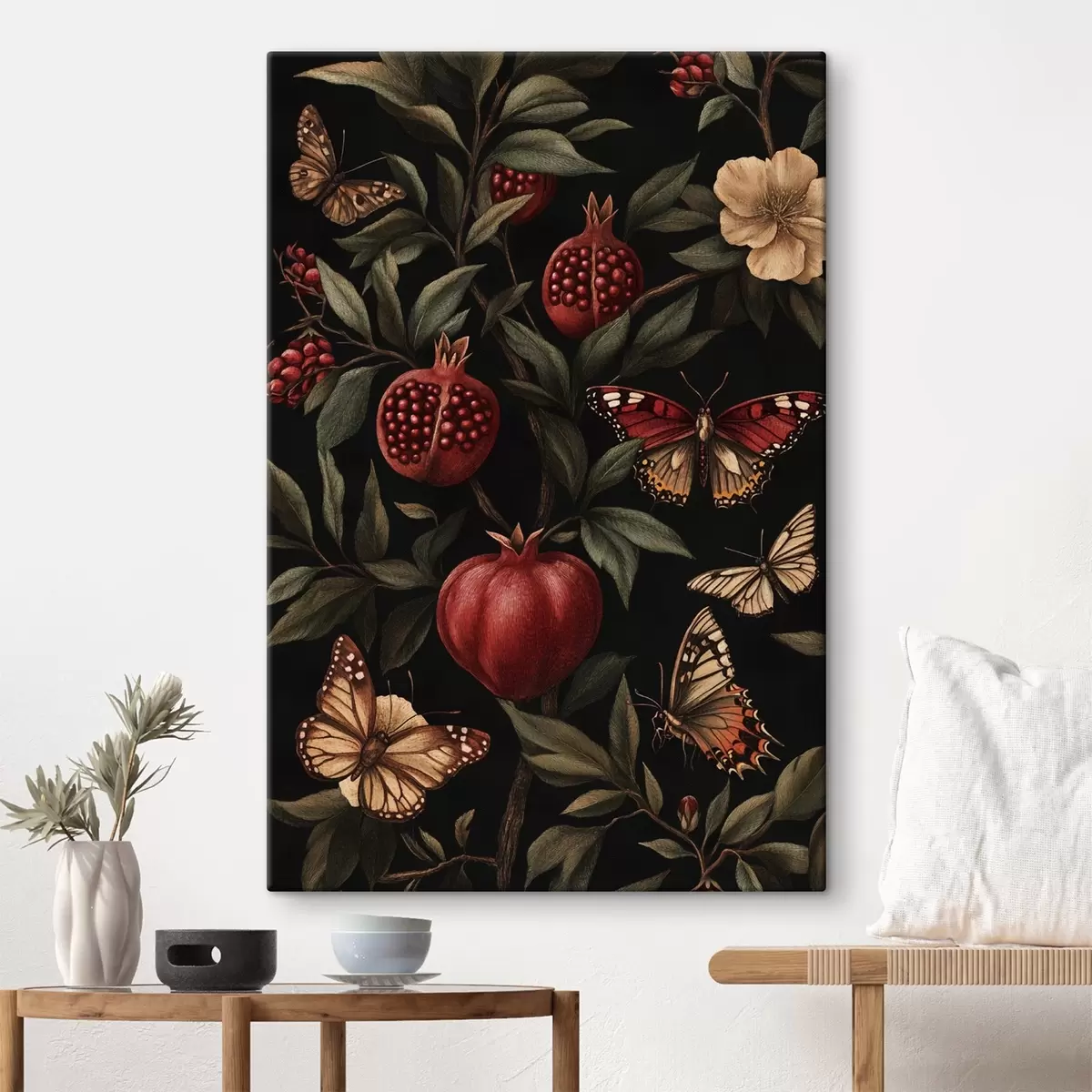 Wandbilder Botanische Kunst mit Granatäpfeln und Schmetterlingen s44511