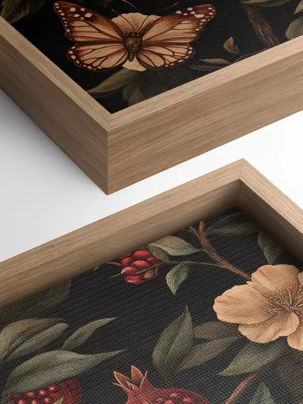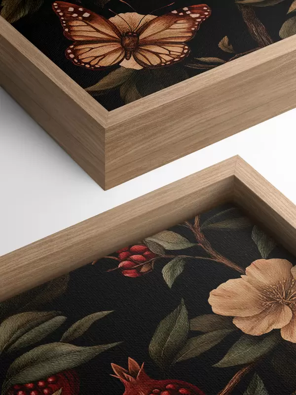 Wandbilder Botanische Kunst mit Granatäpfeln und Schmetterlingen Art. s44511