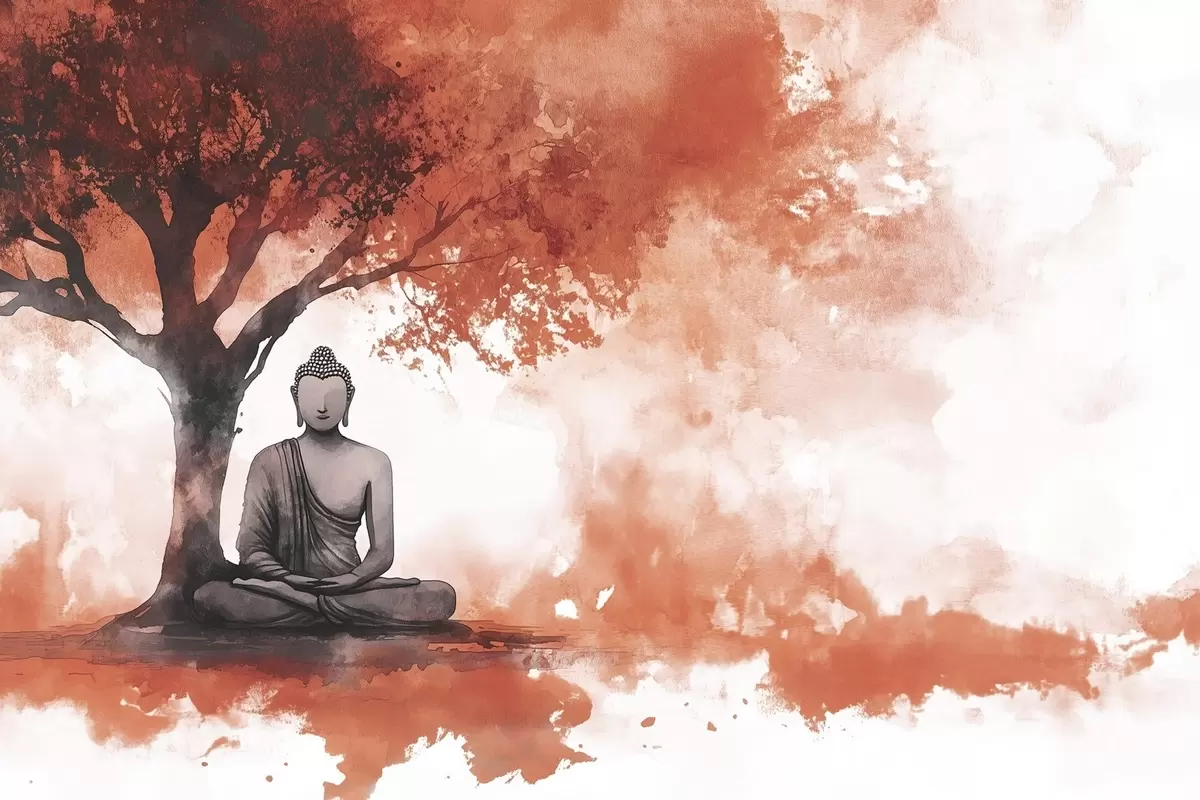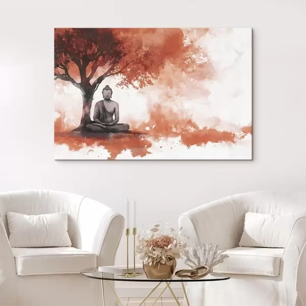 Wandbilder Buddha sitzt unter dem Baum, Meditation, spirituell, orange Farben Art. s44512