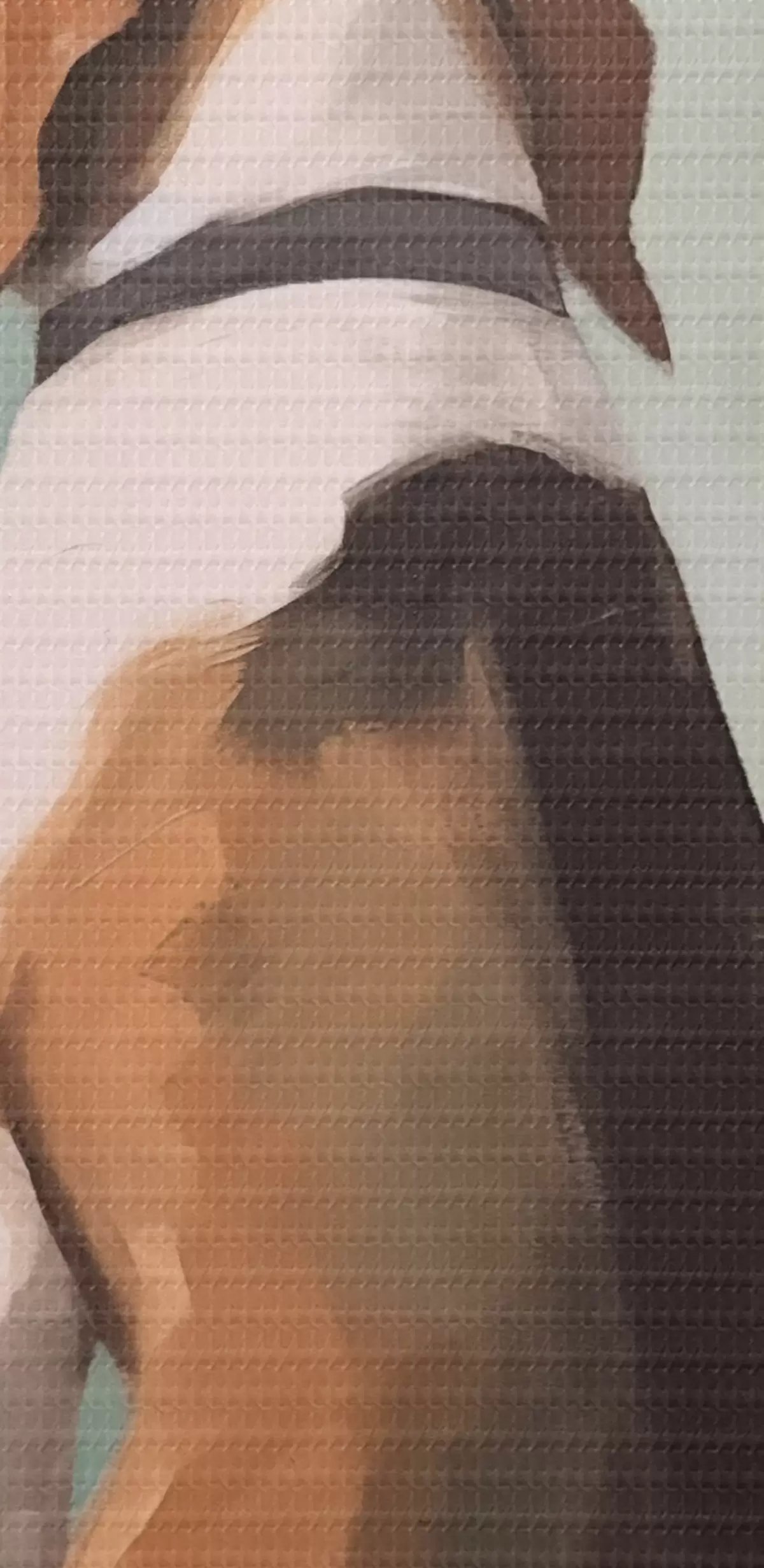 Um die Leinwand auf Keilrahmen zu spannen, ohne das Bild zu beschädigen, verwenden wir ein gespiegeltes Bild.