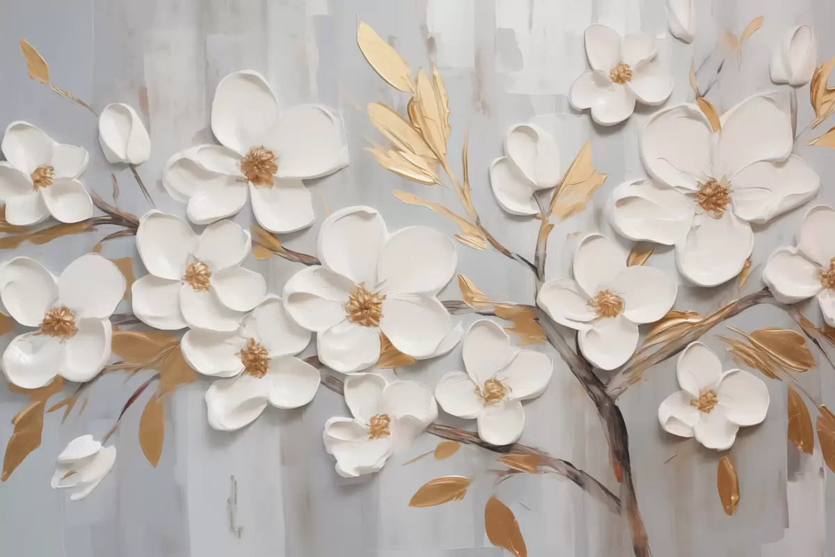 Wandbilder Weiße Blumen Nachahmung Malerei s44586