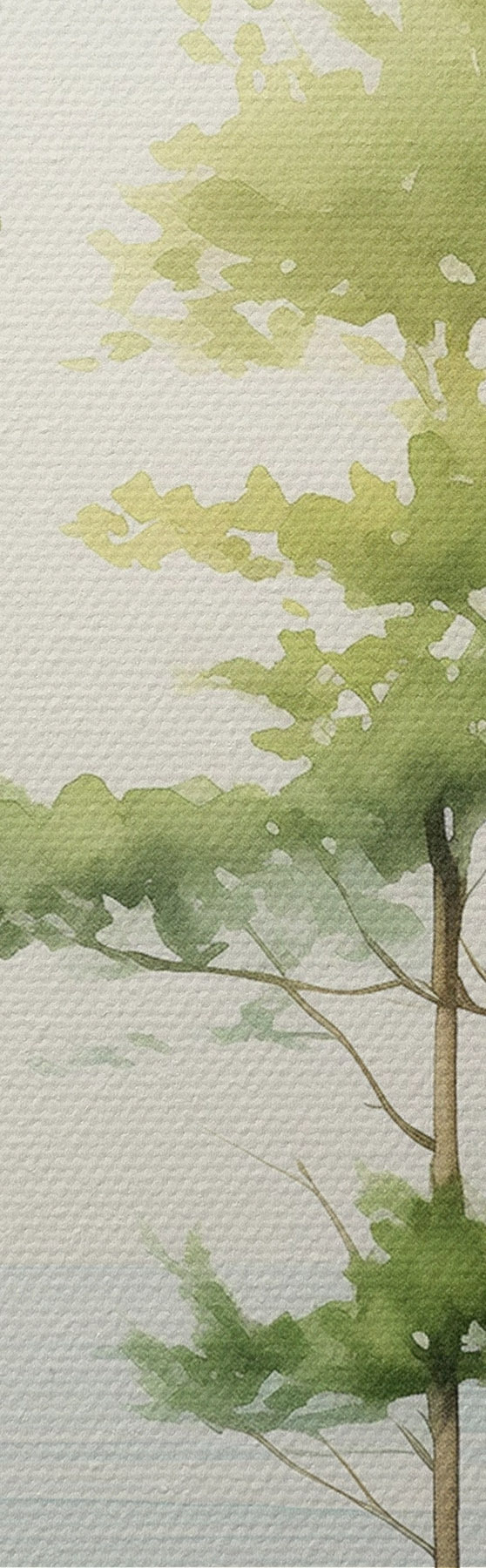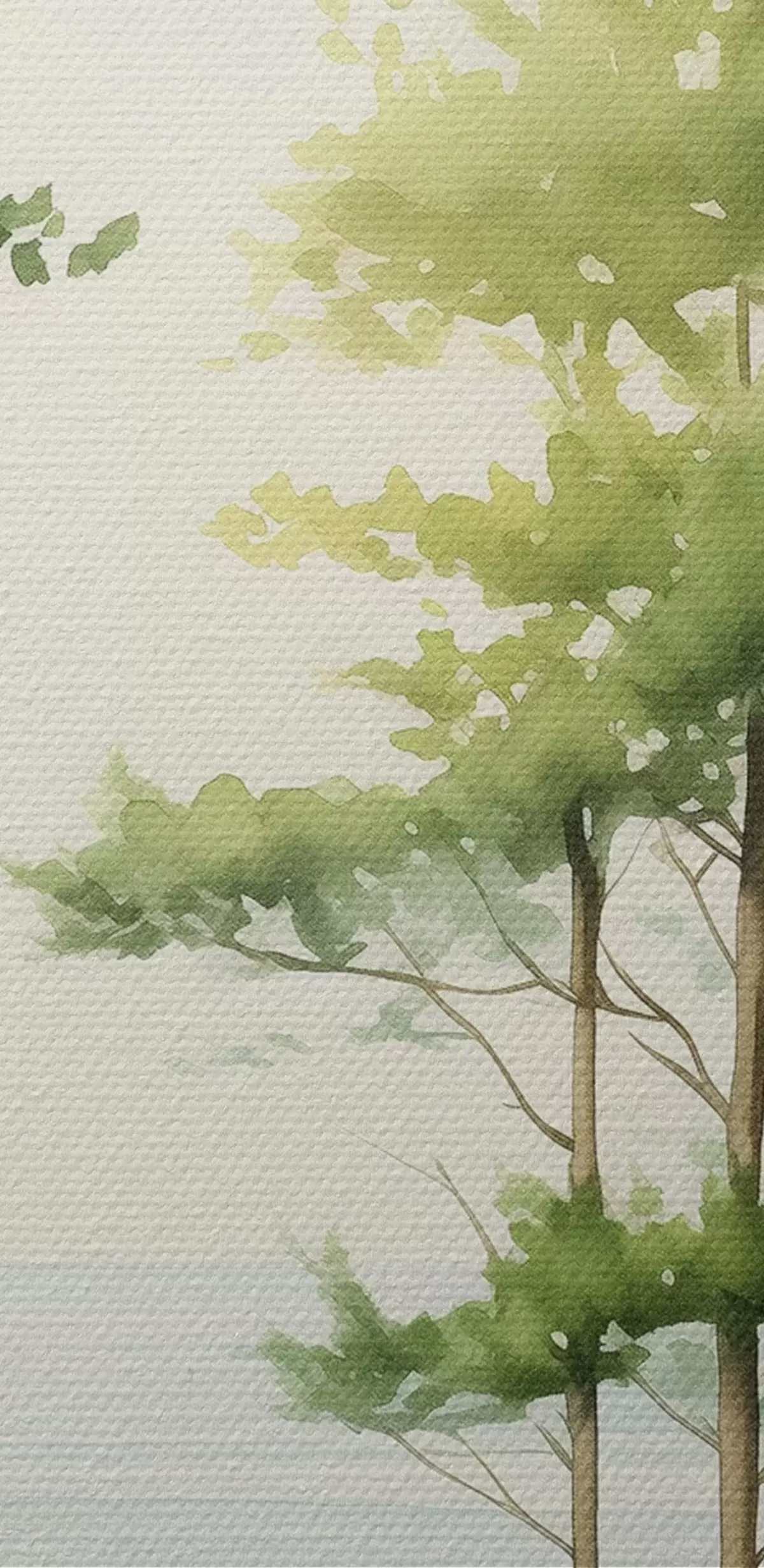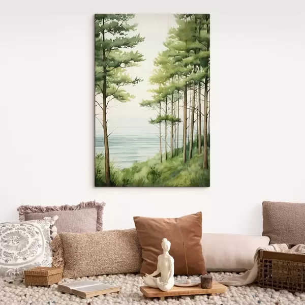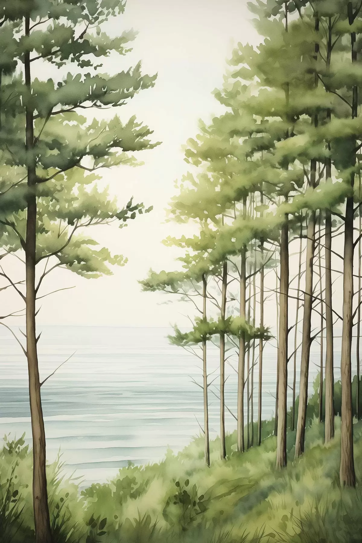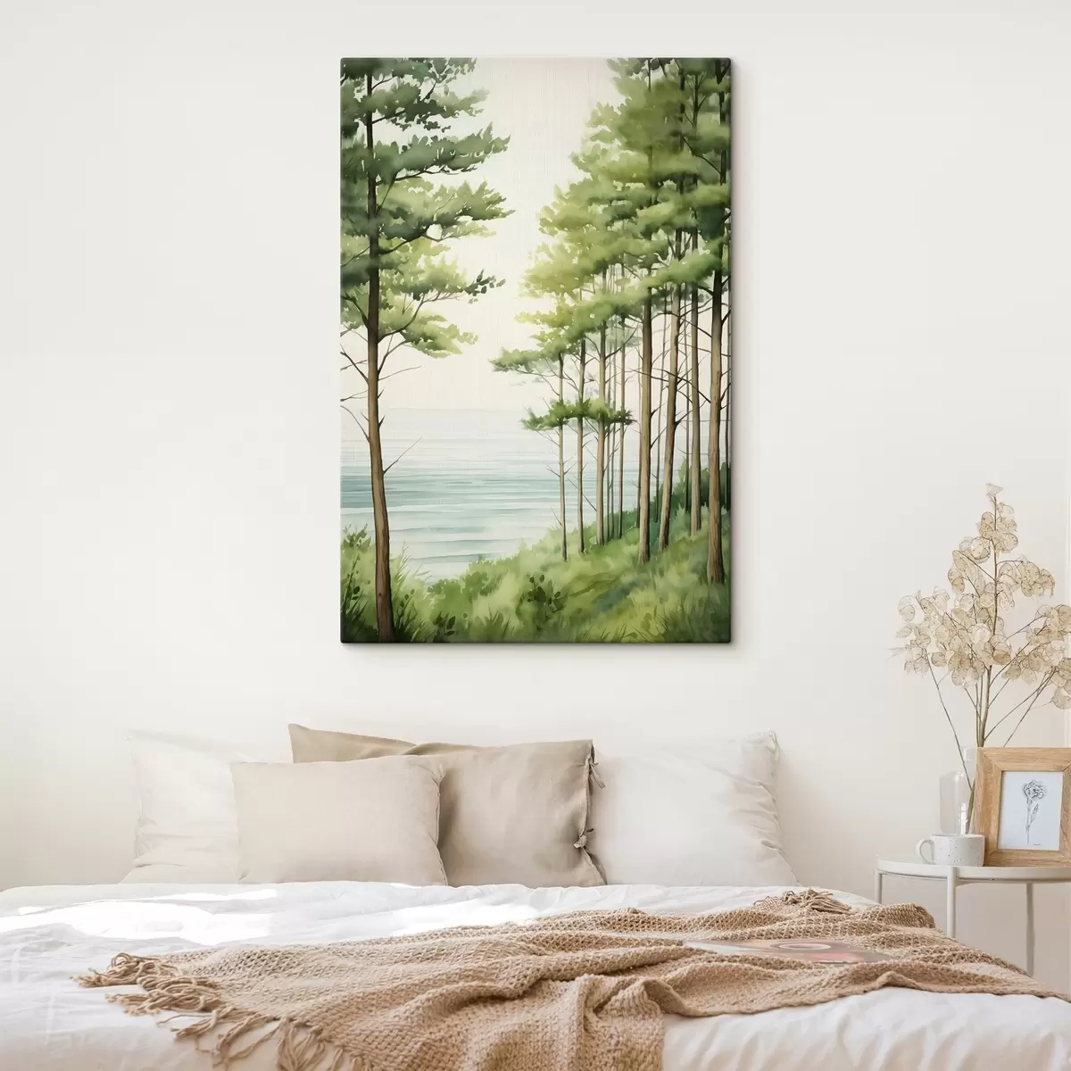 Wandbilder Grüner Kiefernwald in der Nähe des Meeres, Aquarellstil s44603