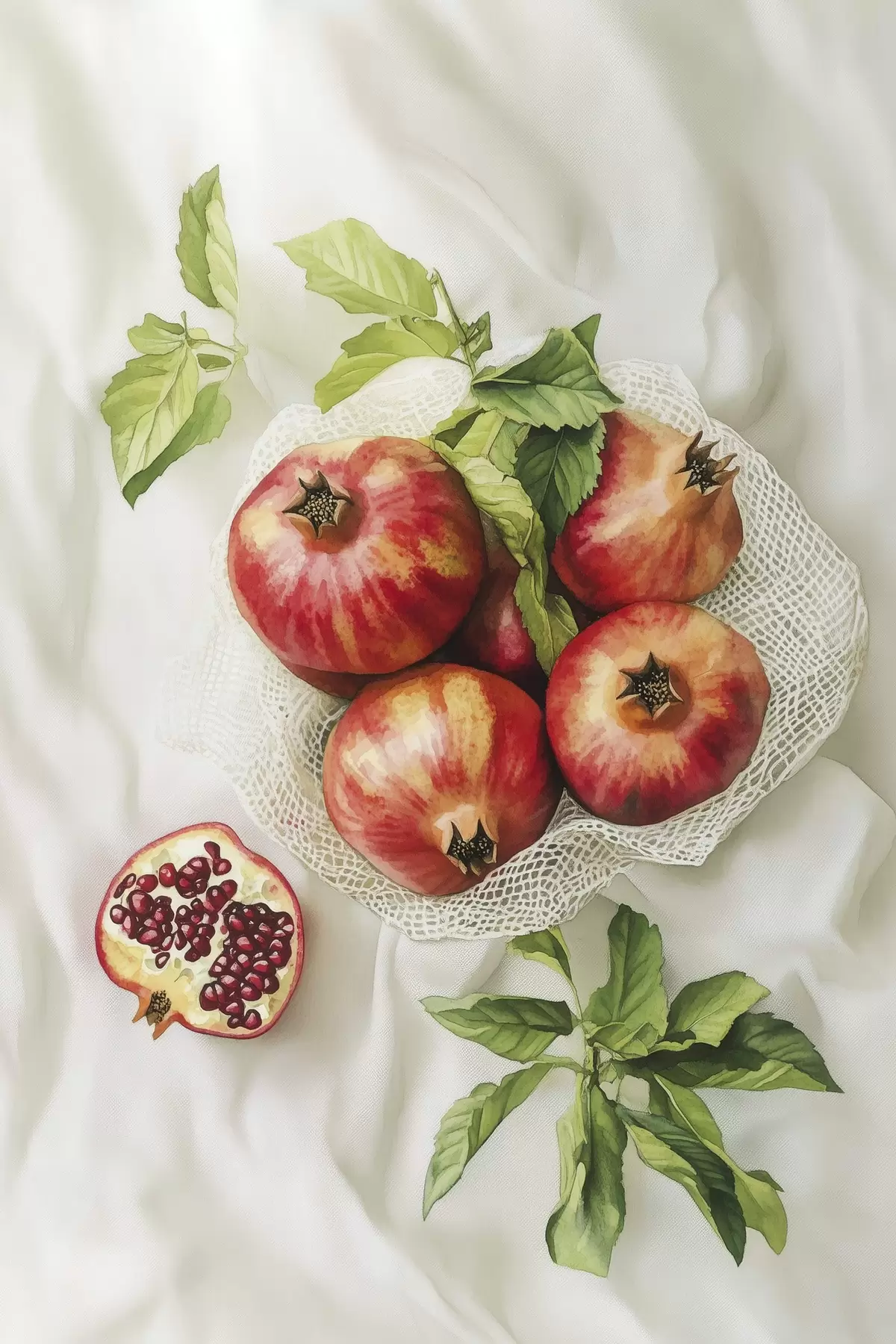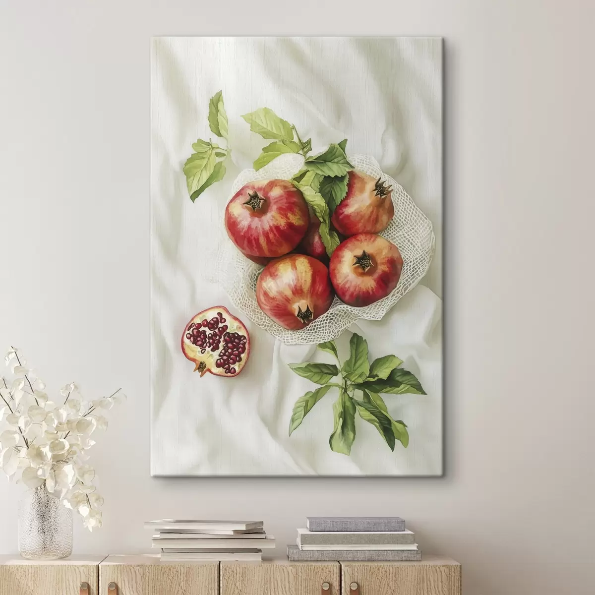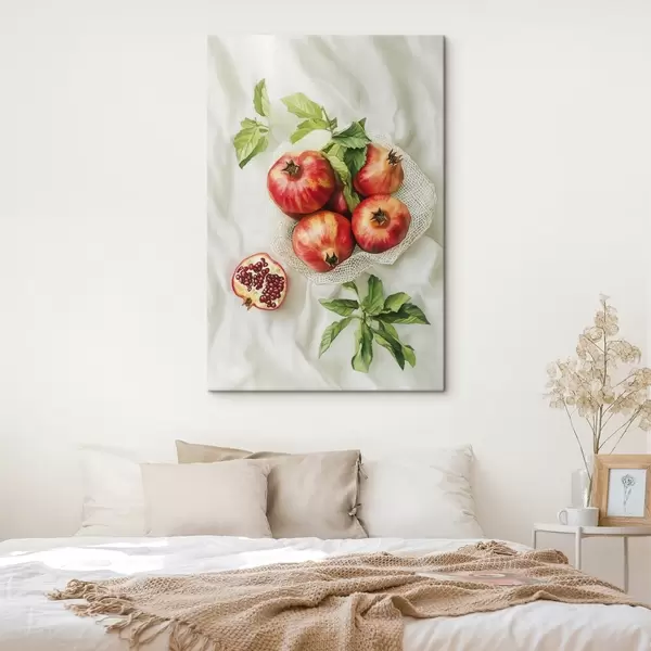 Wandbilder Granatäpfel mit Minzblättern auf den Leinentischdecken, rustikaler Stil Art. s44611