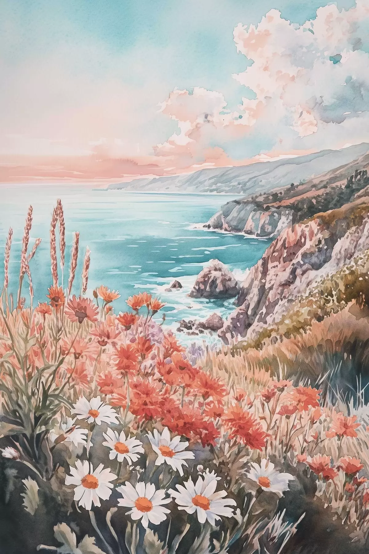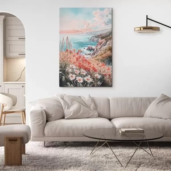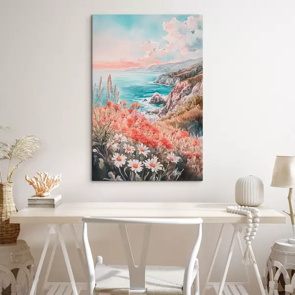 Wandbilder Portugal Ozean Küste auf den Sonnenuntergang, Wiese Blumen Art. s44612