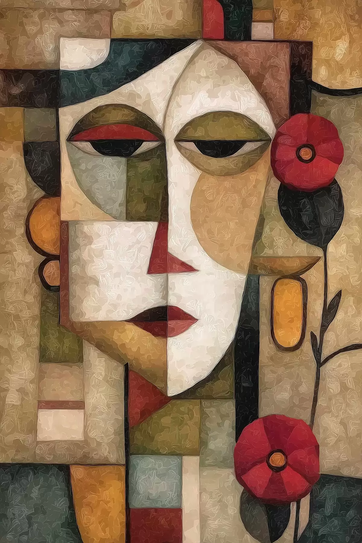 Wandbilder Weibliches Gesicht, Kubismus s44619