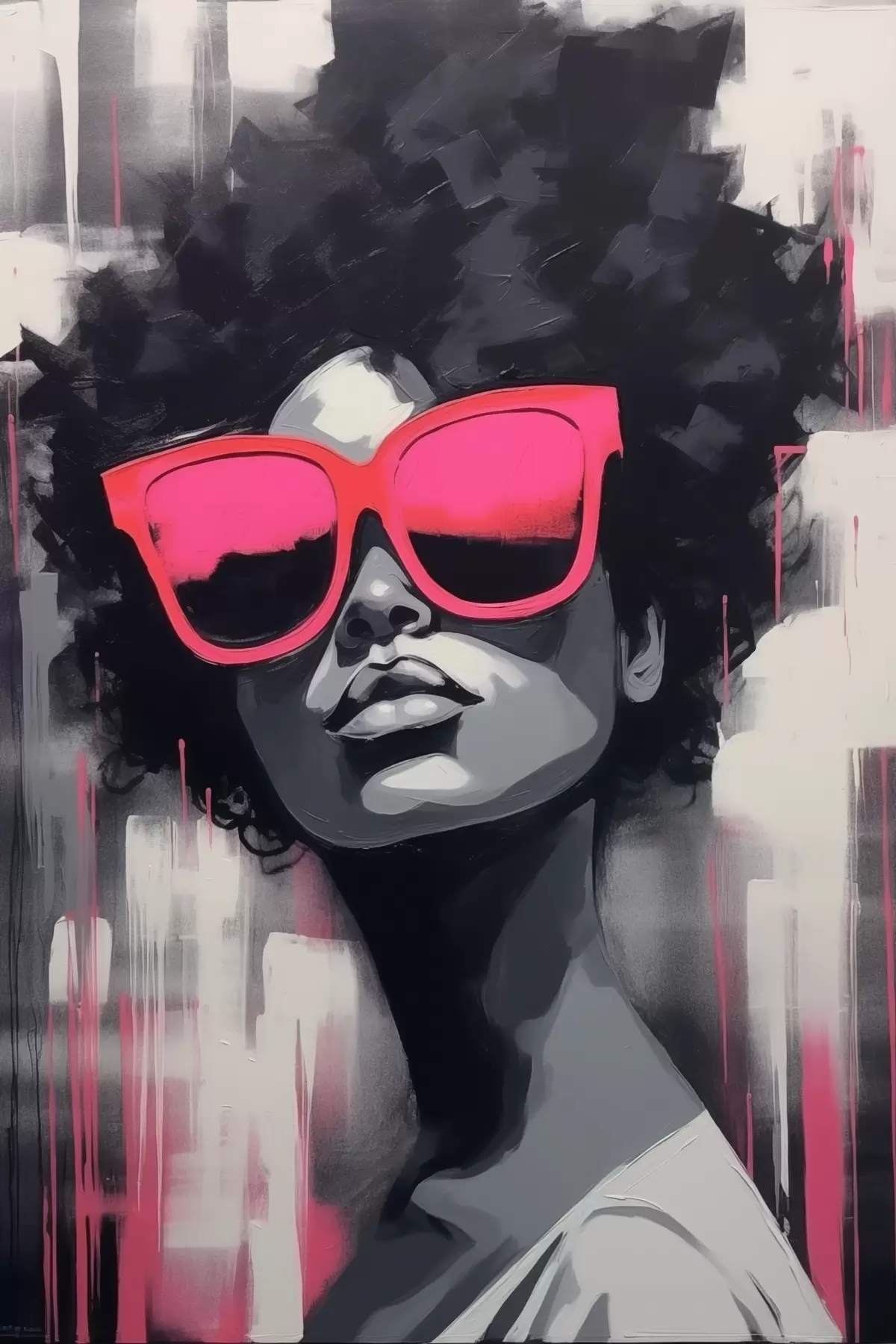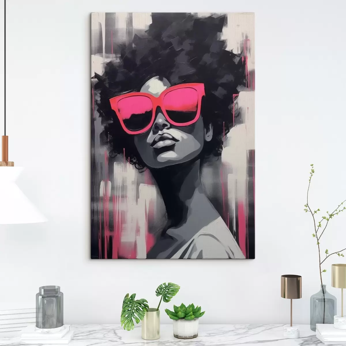 Wandbilder Mädchen mit rosa Brille, schwarzer und weißer Stil Art. s44624