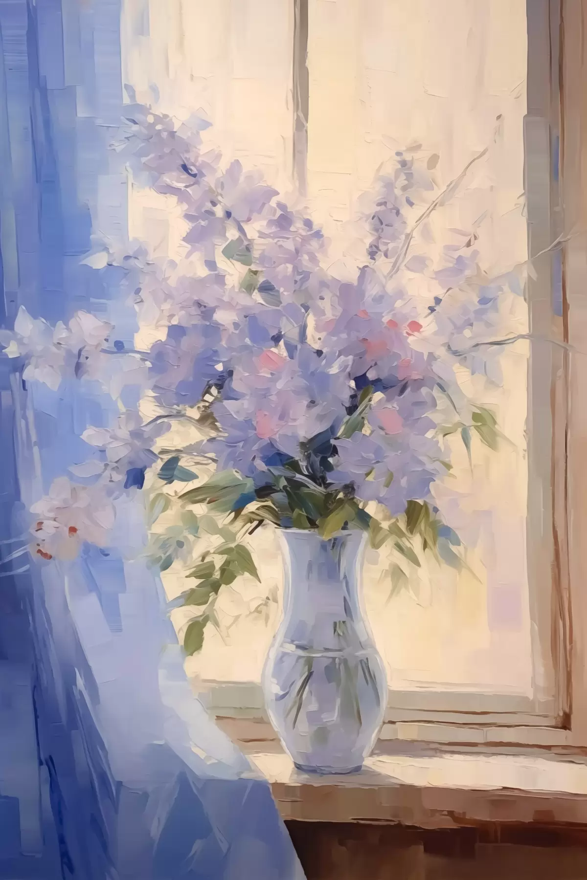 Wandbilder Zarte Blumen in einer Vase am Fenster Art. s44653
