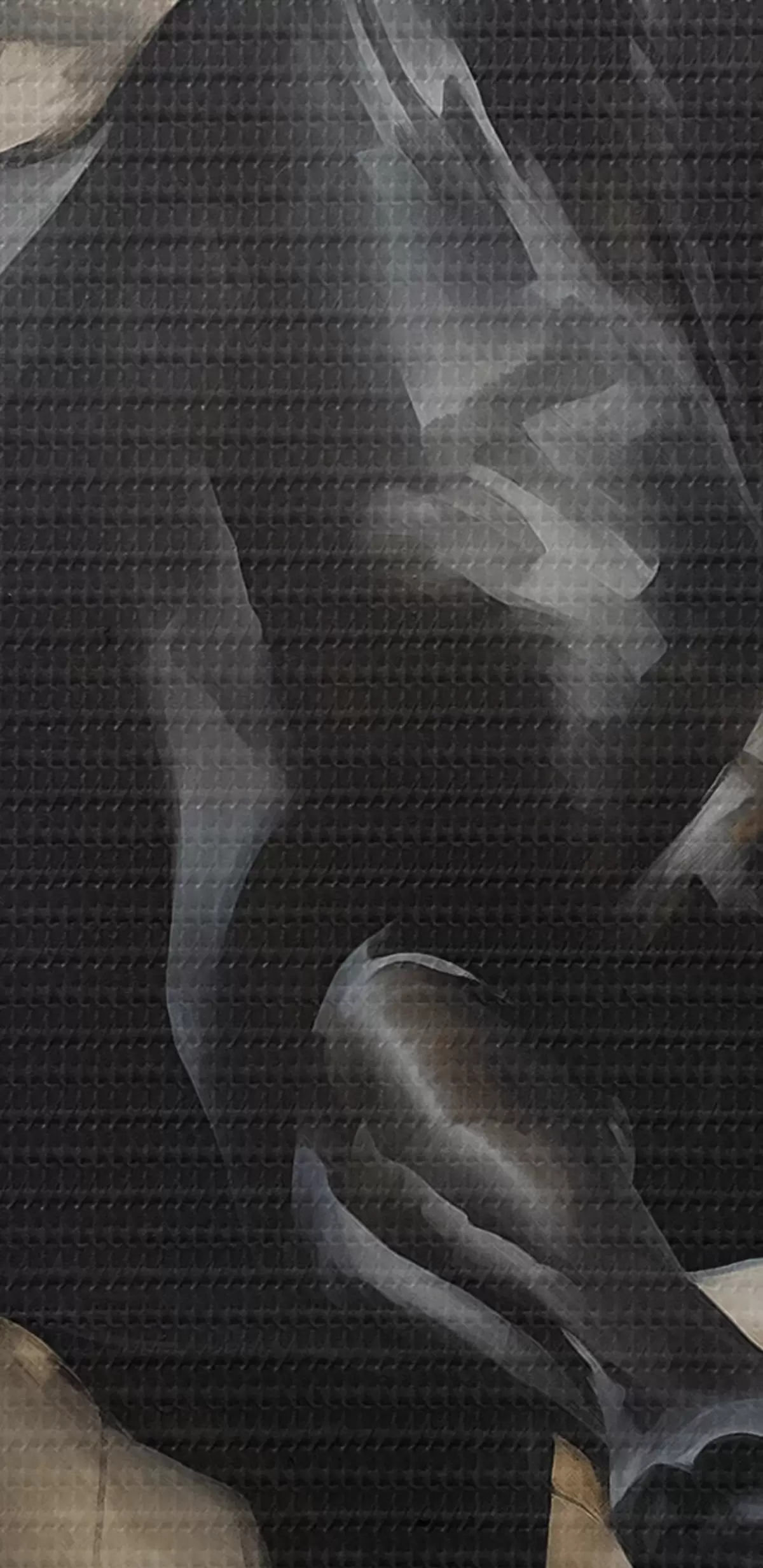 Um die Leinwand auf Keilrahmen zu spannen, ohne das Bild zu beschädigen, verwenden wir ein gespiegeltes Bild.