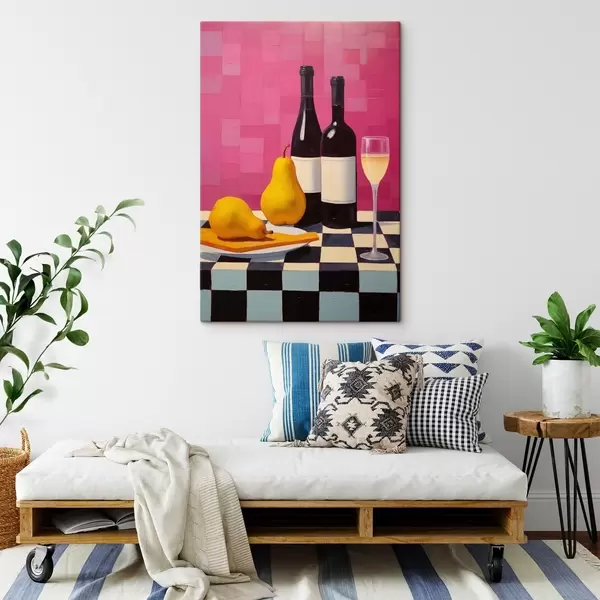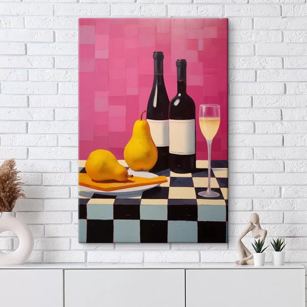 Wandbilder Birnen, ein Glas Wein und zwei Flaschen Wein Art. s44683