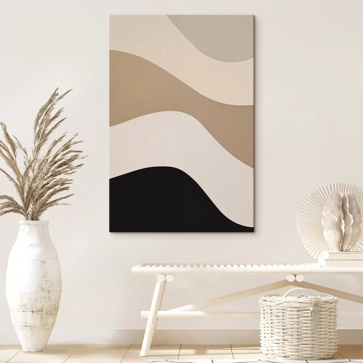 Wandbilder Abstrakte Wellen in Beige und Schwarz Art. s44687
