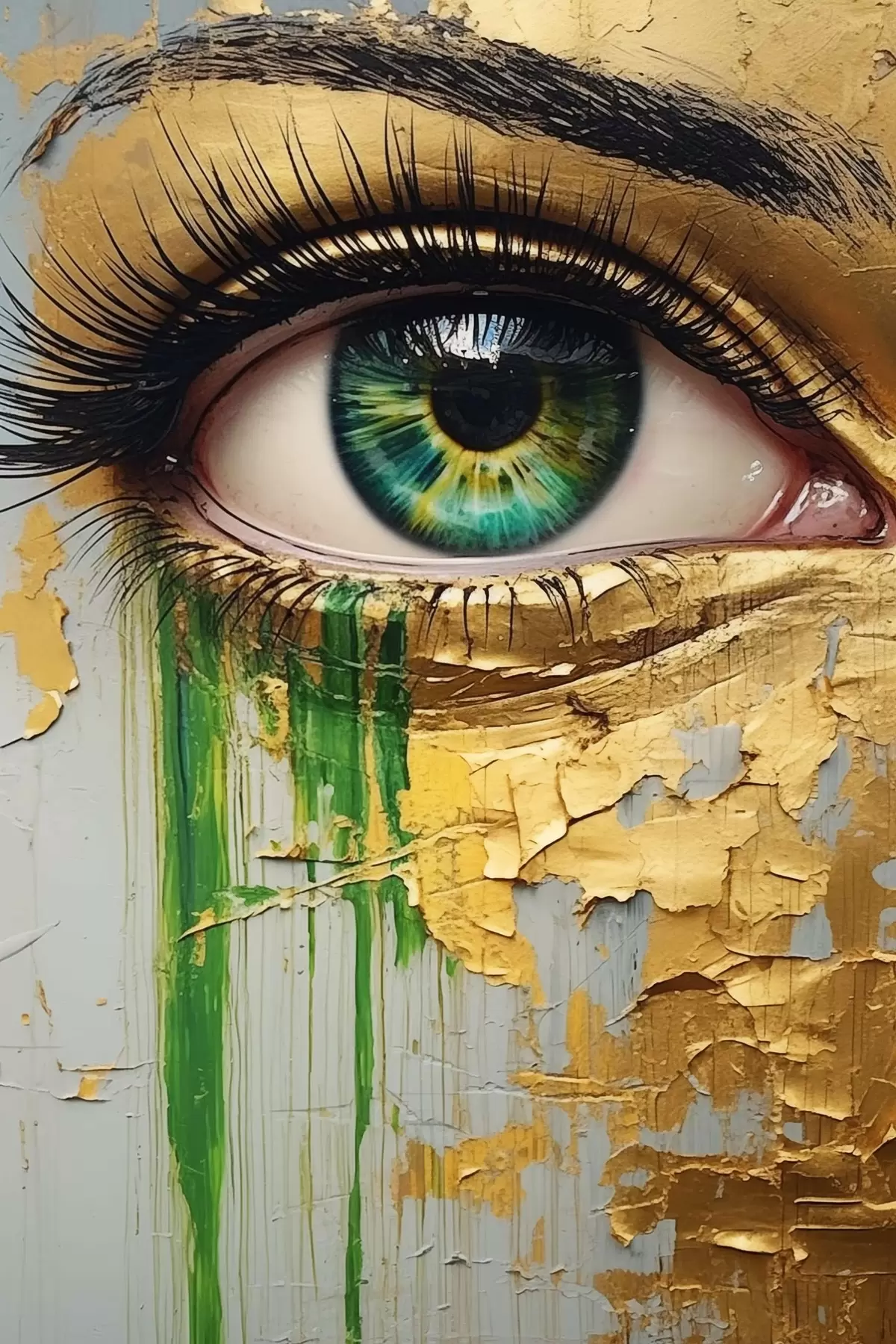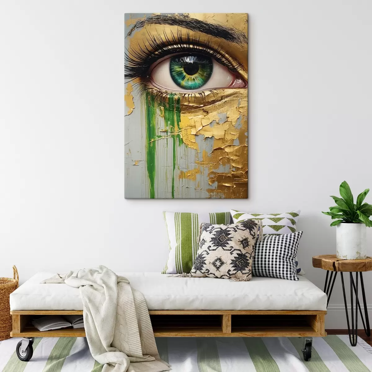 Wandbilder Grünes Auge auf dem Hintergrund von gerissener Farbe Art. s44690