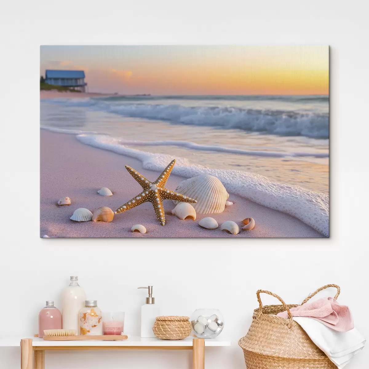 Wandbilder Meeresküste mit Seesternen, Muscheln und Wellen Art. s44714