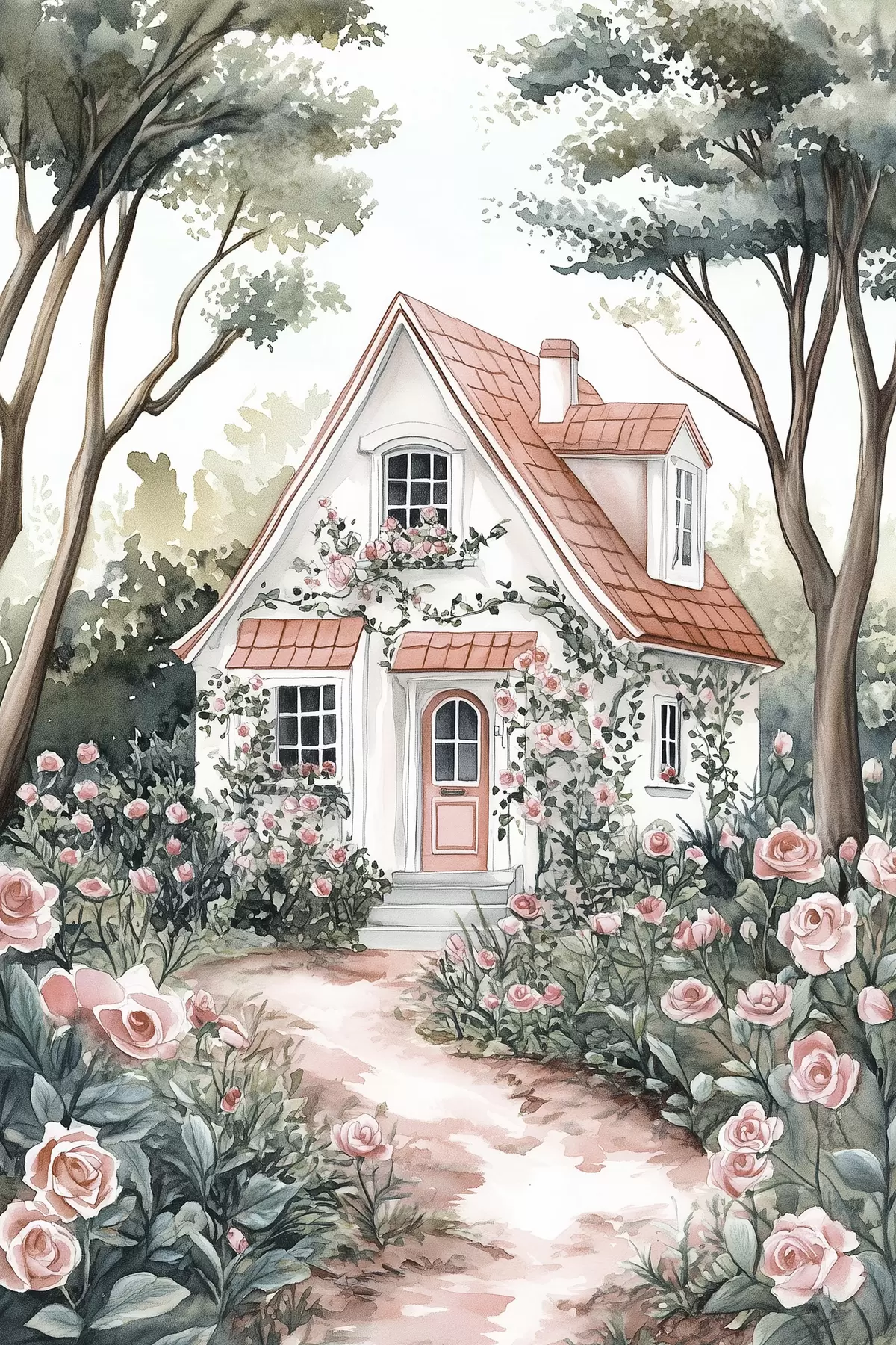 Wandbilder Weißes Haus mit Rosengarten im Wald Art. s44716