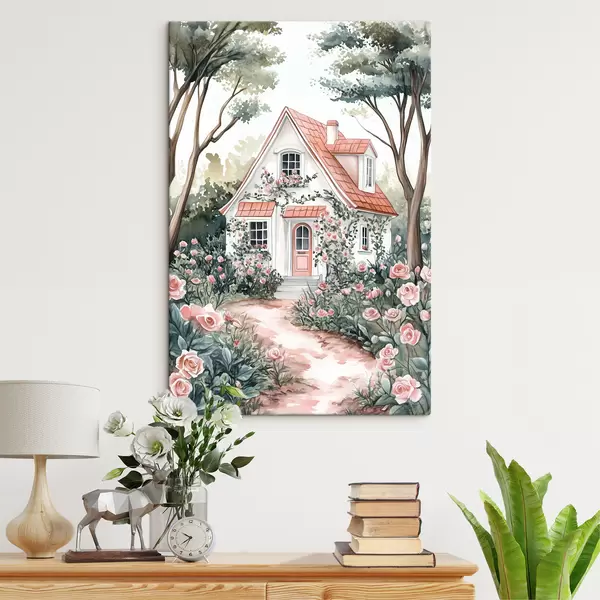 Wandbilder Weißes Haus mit Rosengarten im Wald Art. s44716