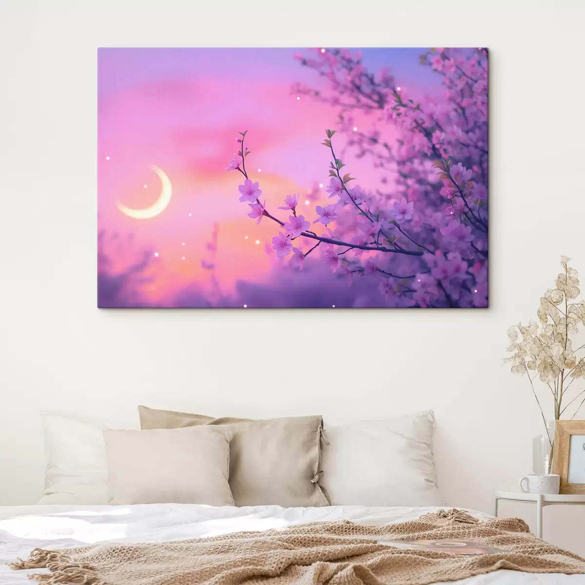 Wandbilder Lila Himmel mit Mond und Kirschbäumen Art. s44717