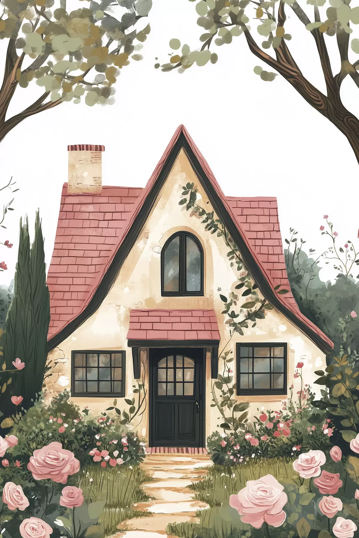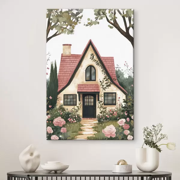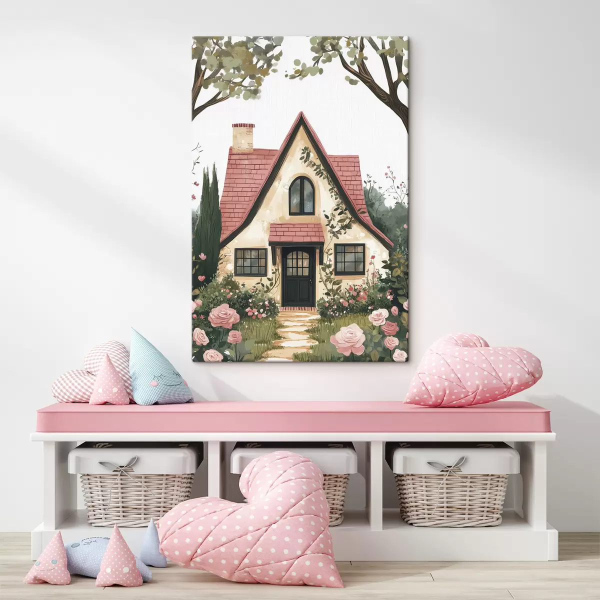 Wandbilder Ein märchenhaftes Haus im Wald, Rosen, Pastellfarben Art. s44718