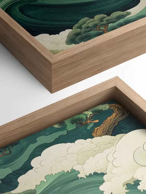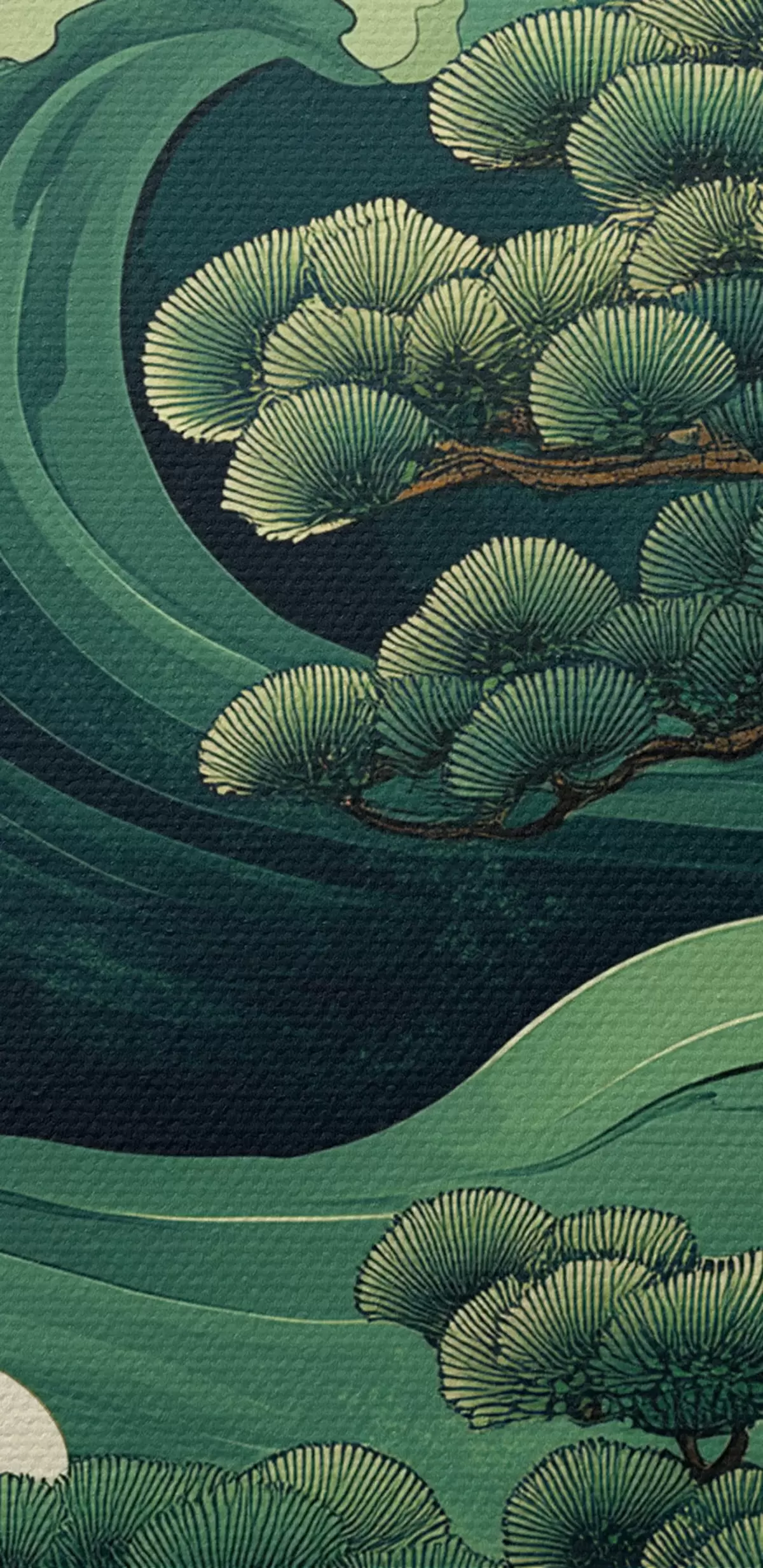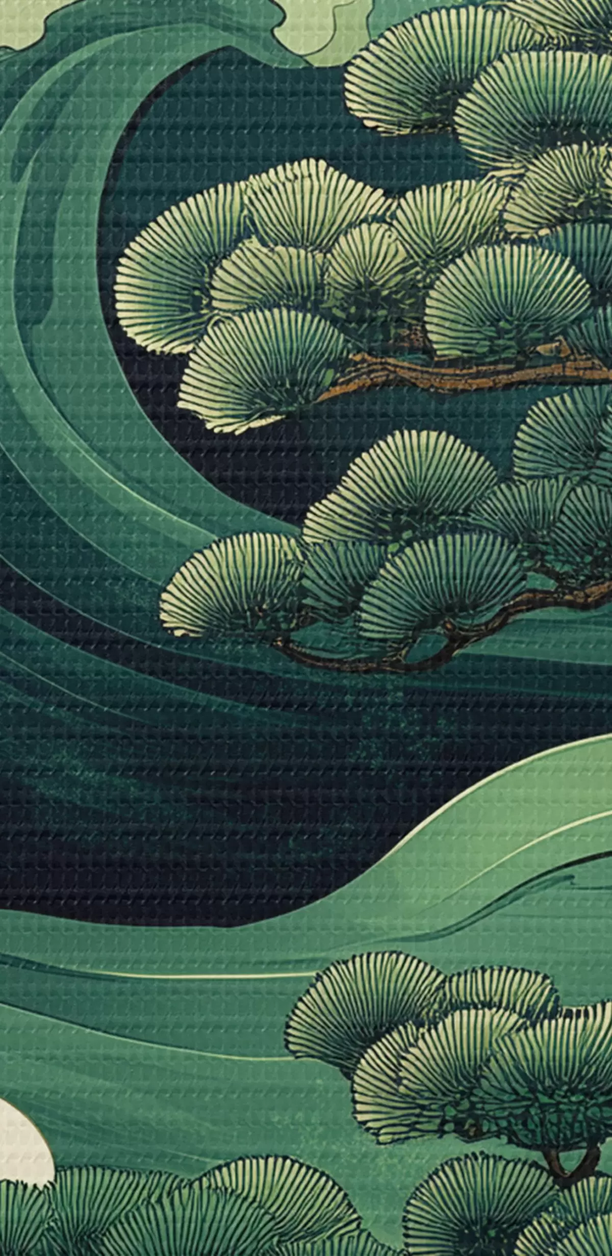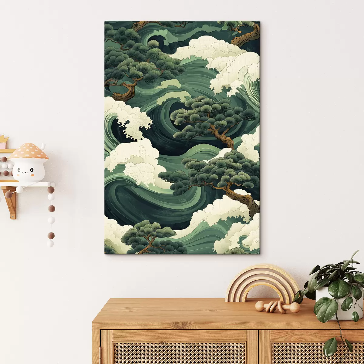 Wandbilder Zeichnung im chinesischen Stil mit Meereswellen und Pinienbäumen Art. s44719