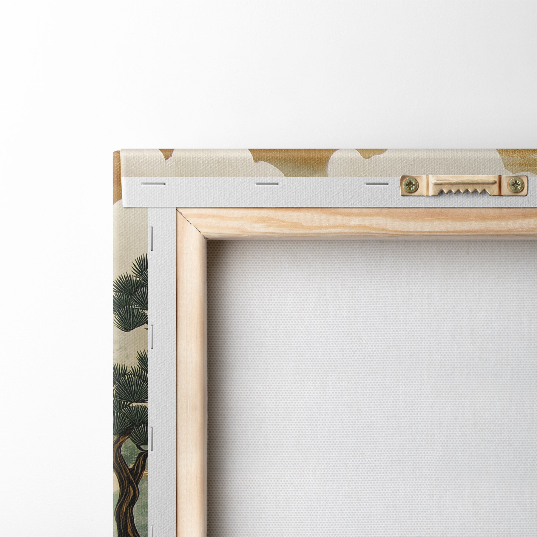 Um die Leinwand auf Keilrahmen zu spannen, ohne das Bild zu beschädigen, verwenden wir ein gespiegeltes Bild.