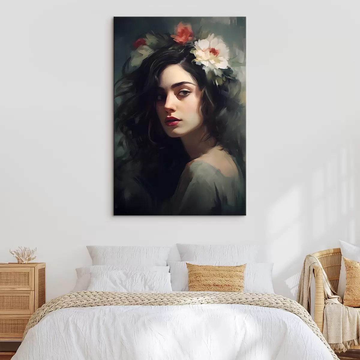 Wandbilder Dunkelhaarige Frau mit einer Blumenkrone s44762