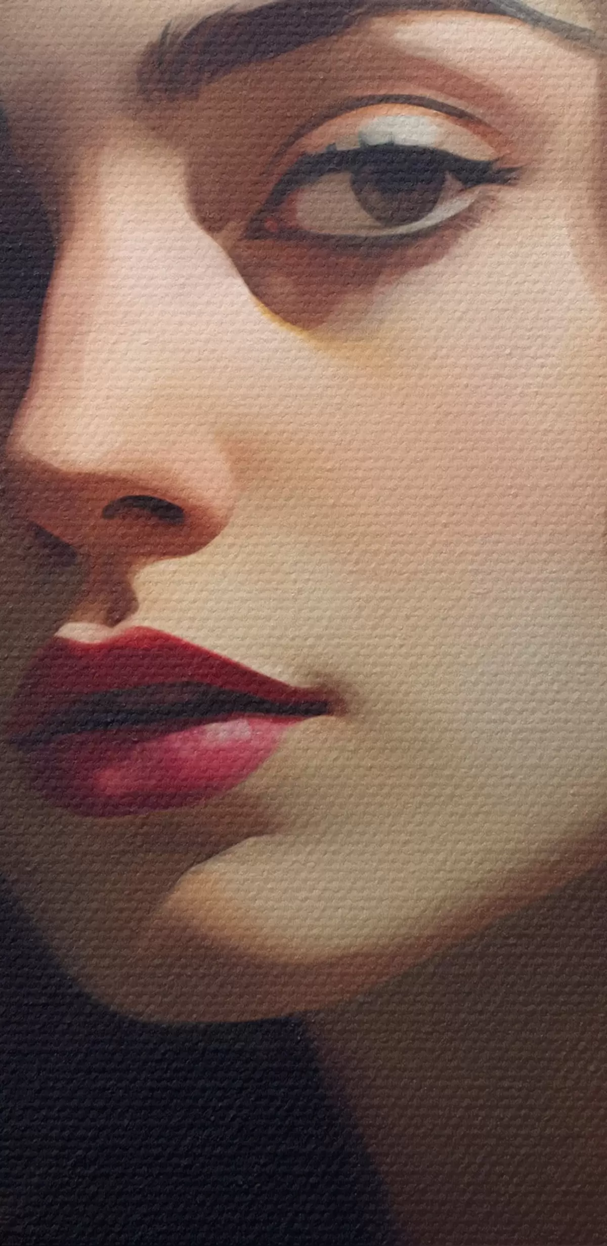 Das feine Fadengeflecht auf dieser Leinwand ähnelt der Oberfläche von professionellen Künstlerleinwänden.