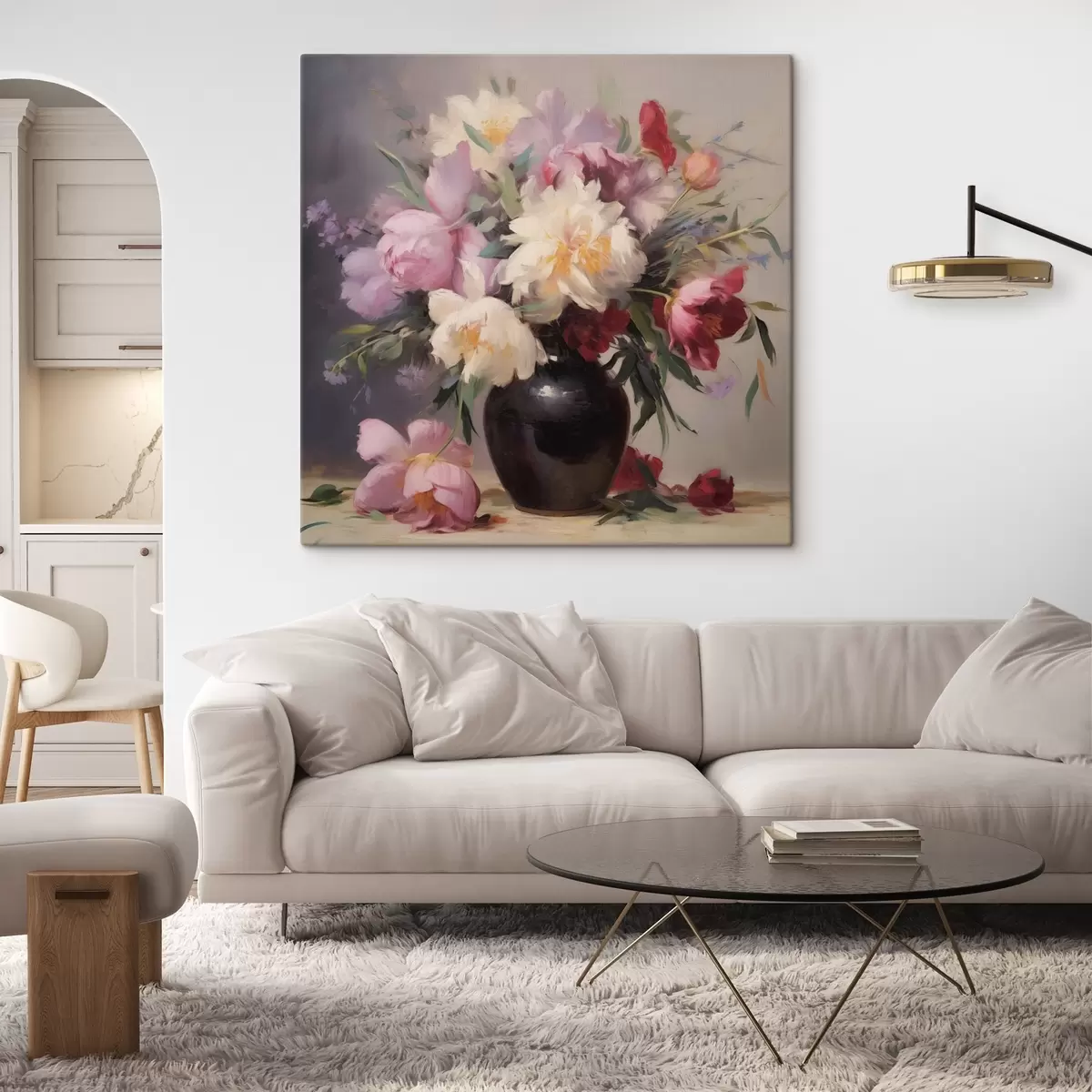 Wandbilder Pfingstrosenstrauß in einer dunklen Vase Art. s44769