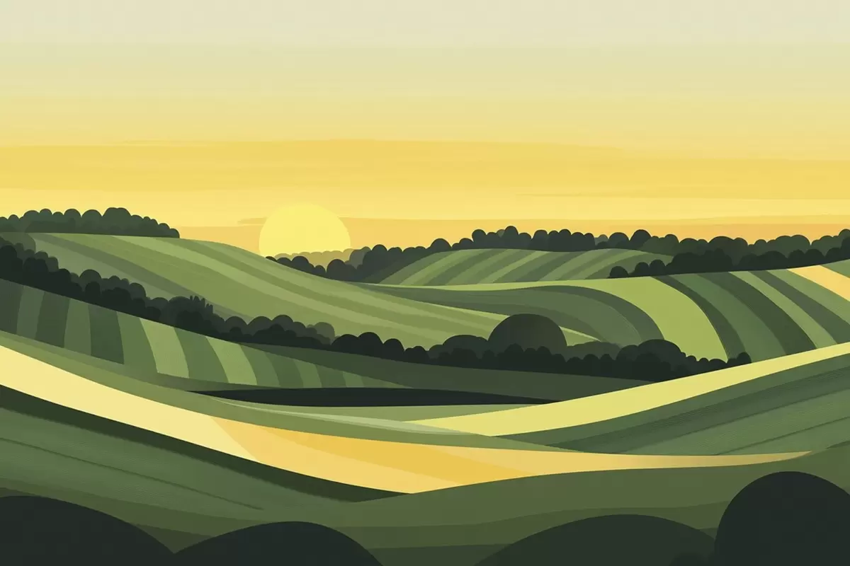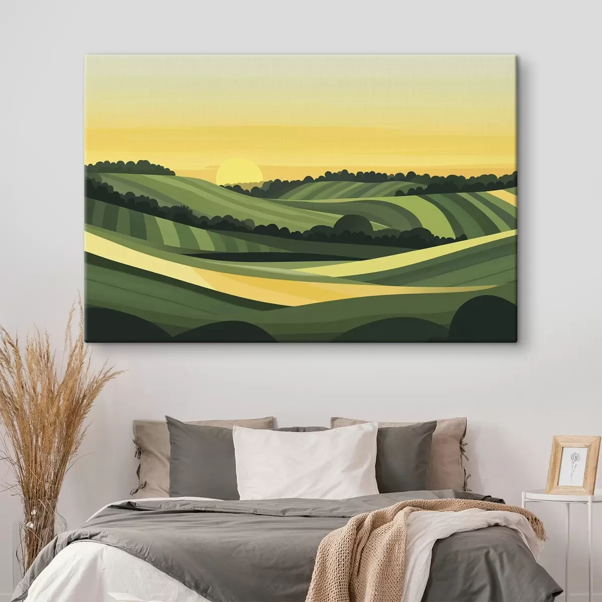 Wandbilder Abstrakte Landschaften mit Hügeln und Sonnenuntergang s44785