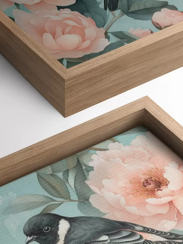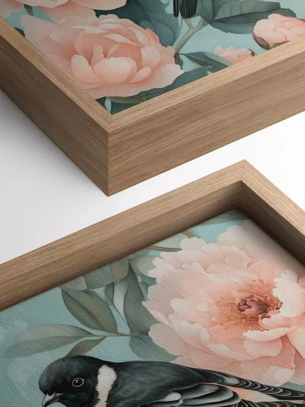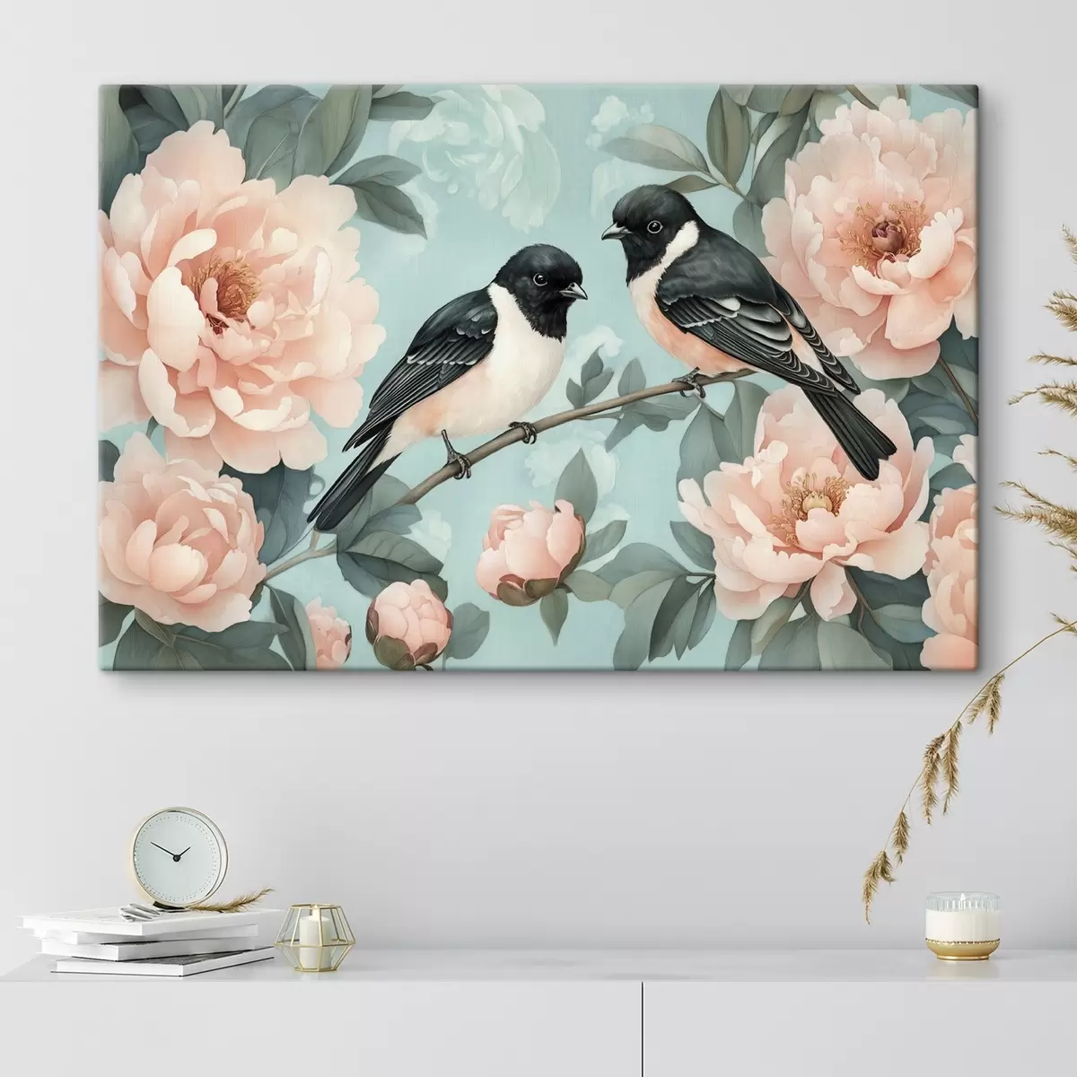 Wandbilder Zwei Vögel auf dem Zweig mit Pfingstrosen Art. s44786