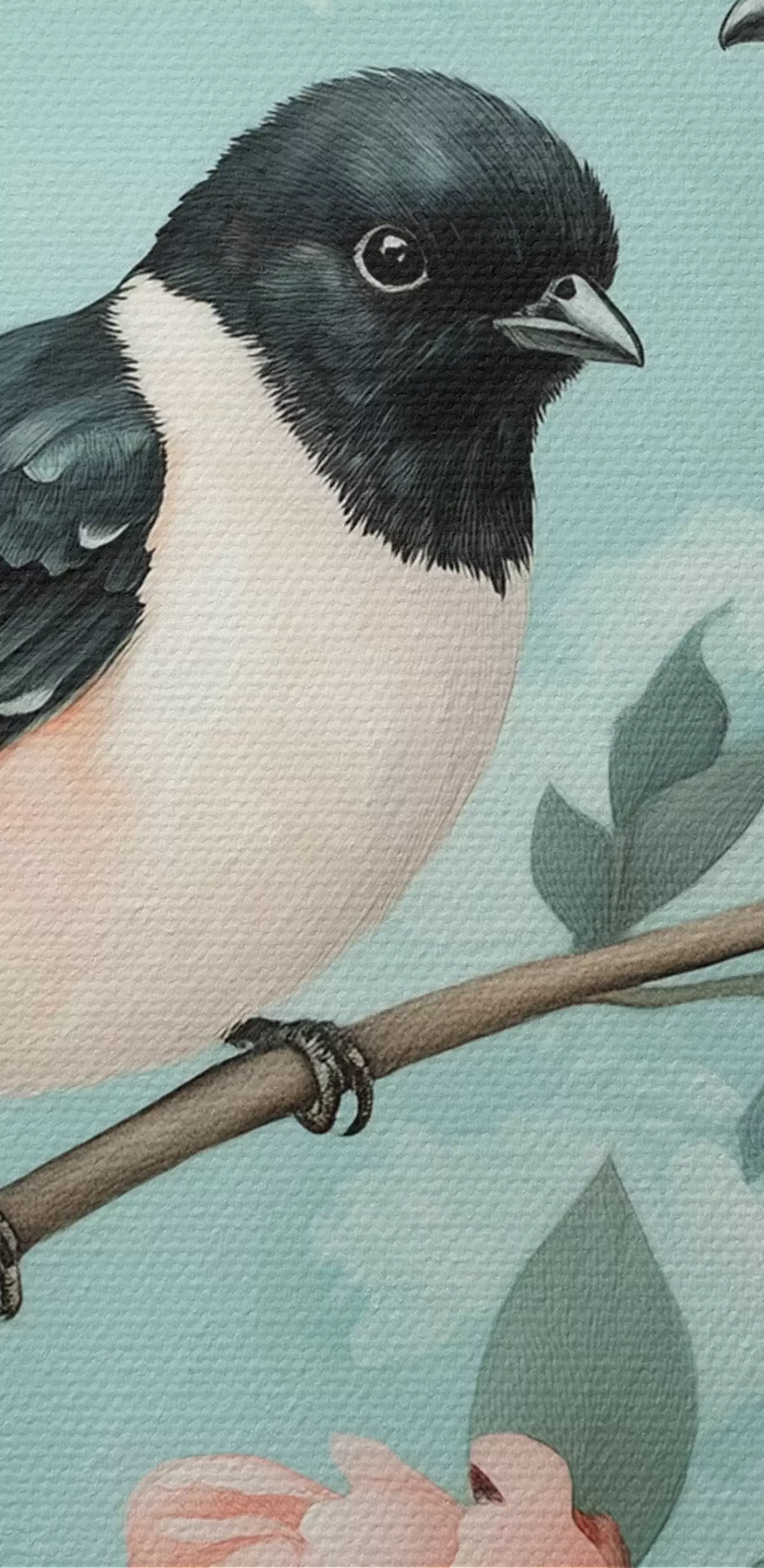 Wandbilder Zwei Vögel auf dem Zweig mit Pfingstrosen s44786