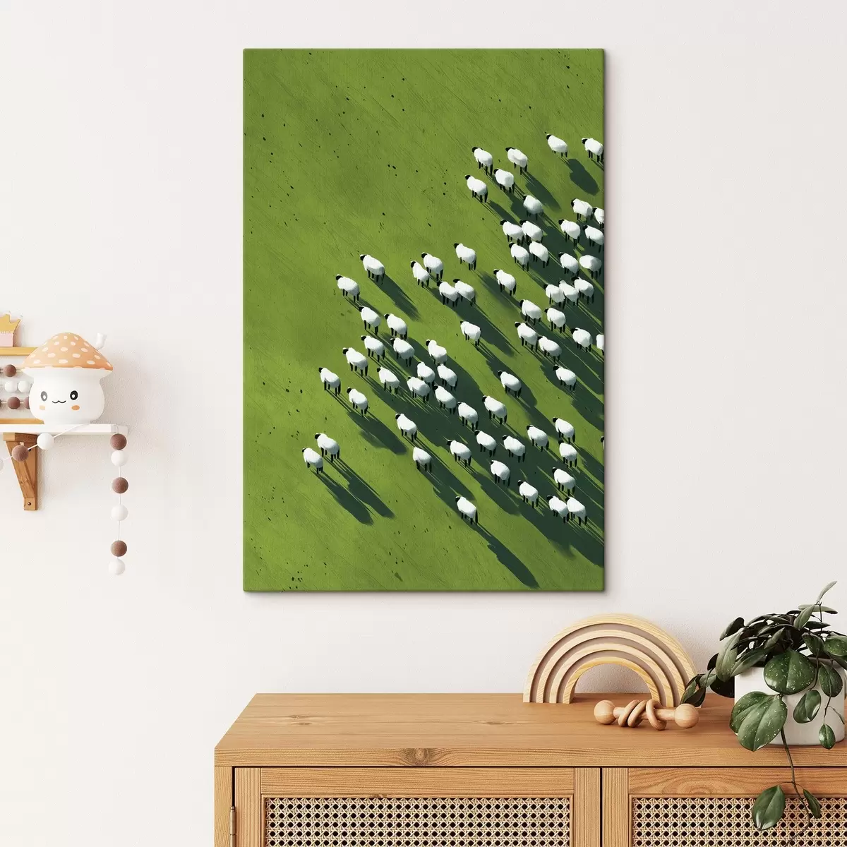 Wandbilder Grünes Feld mit einer Schafherde, Abstraktion, Luftaufnahme Art. s44793