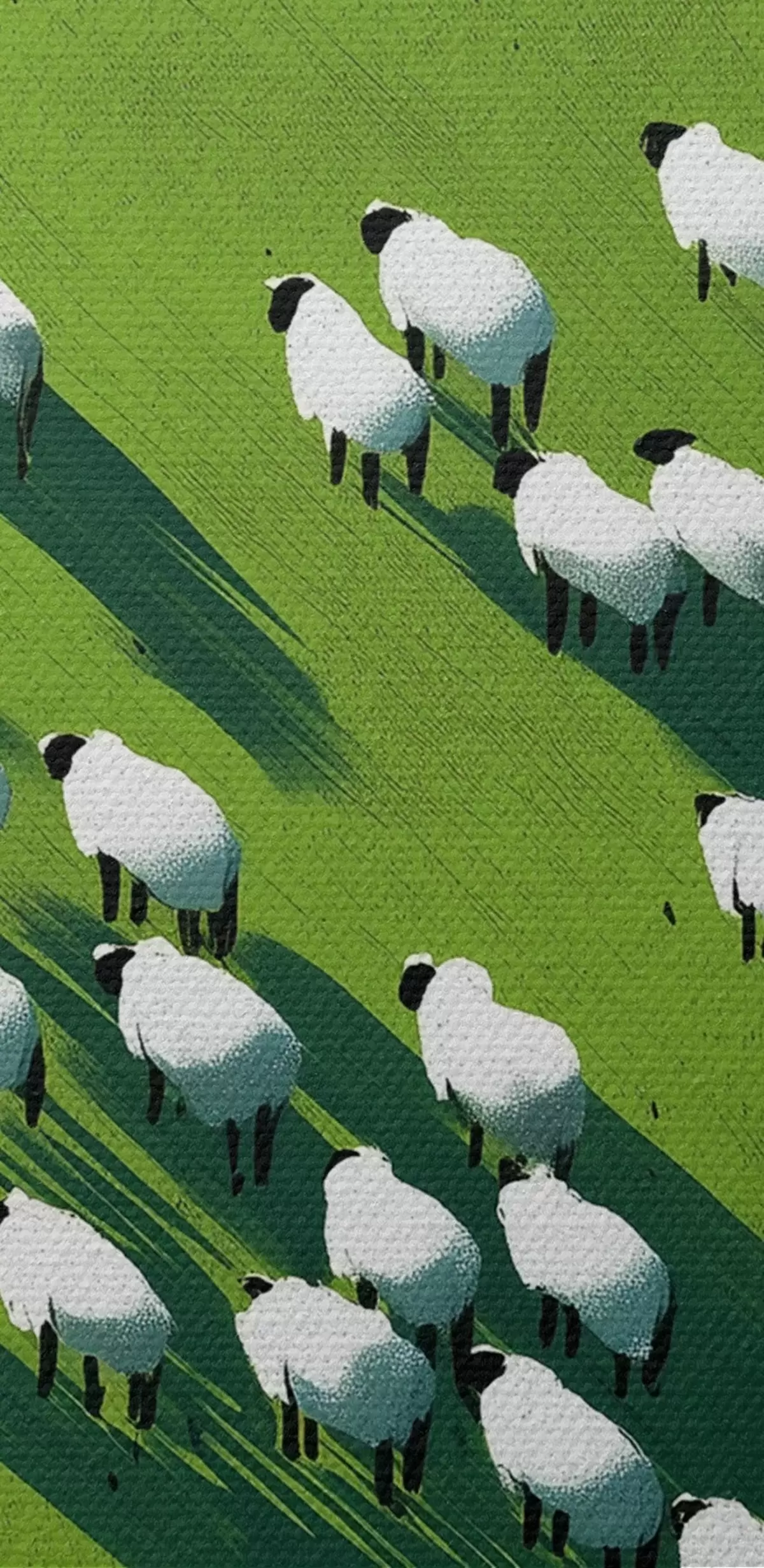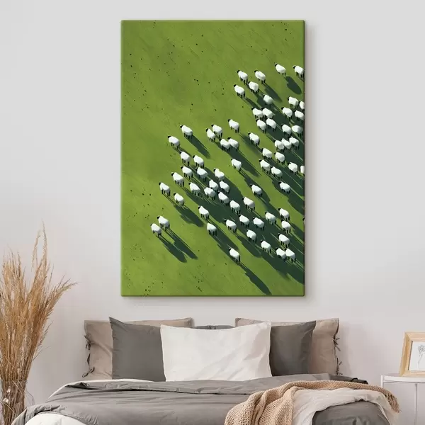 Wandbilder Grünes Feld mit einer Schafherde, Abstraktion, Luftaufnahme Art. s44793