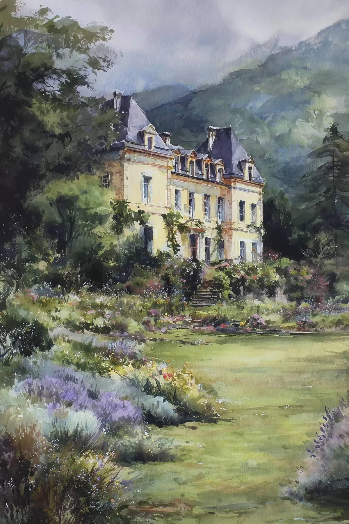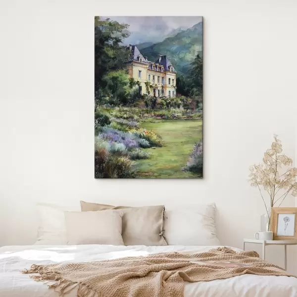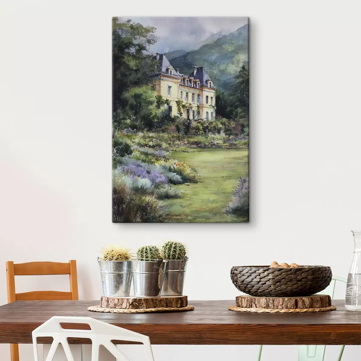 Wandbilder Französisches Schloss, umgeben von einem Garten mit Lavendel Art. s44797