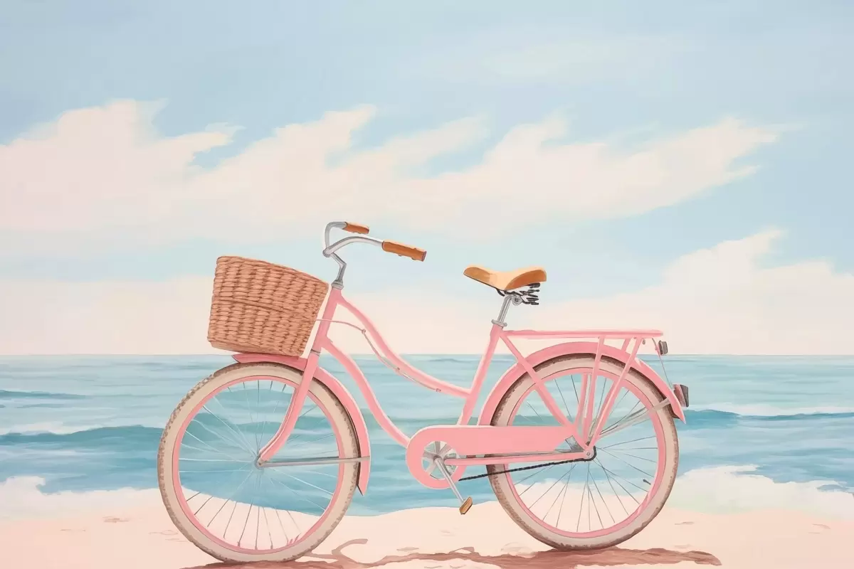 Wandbilder Rosa Fahrrad am Strand Art. s44808