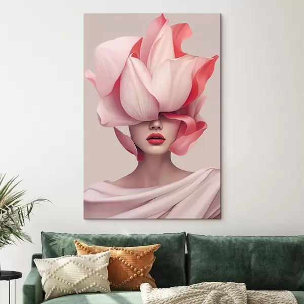 Wandbilder Weibliches Porträt mit großen Blütenblättern Art. s44812