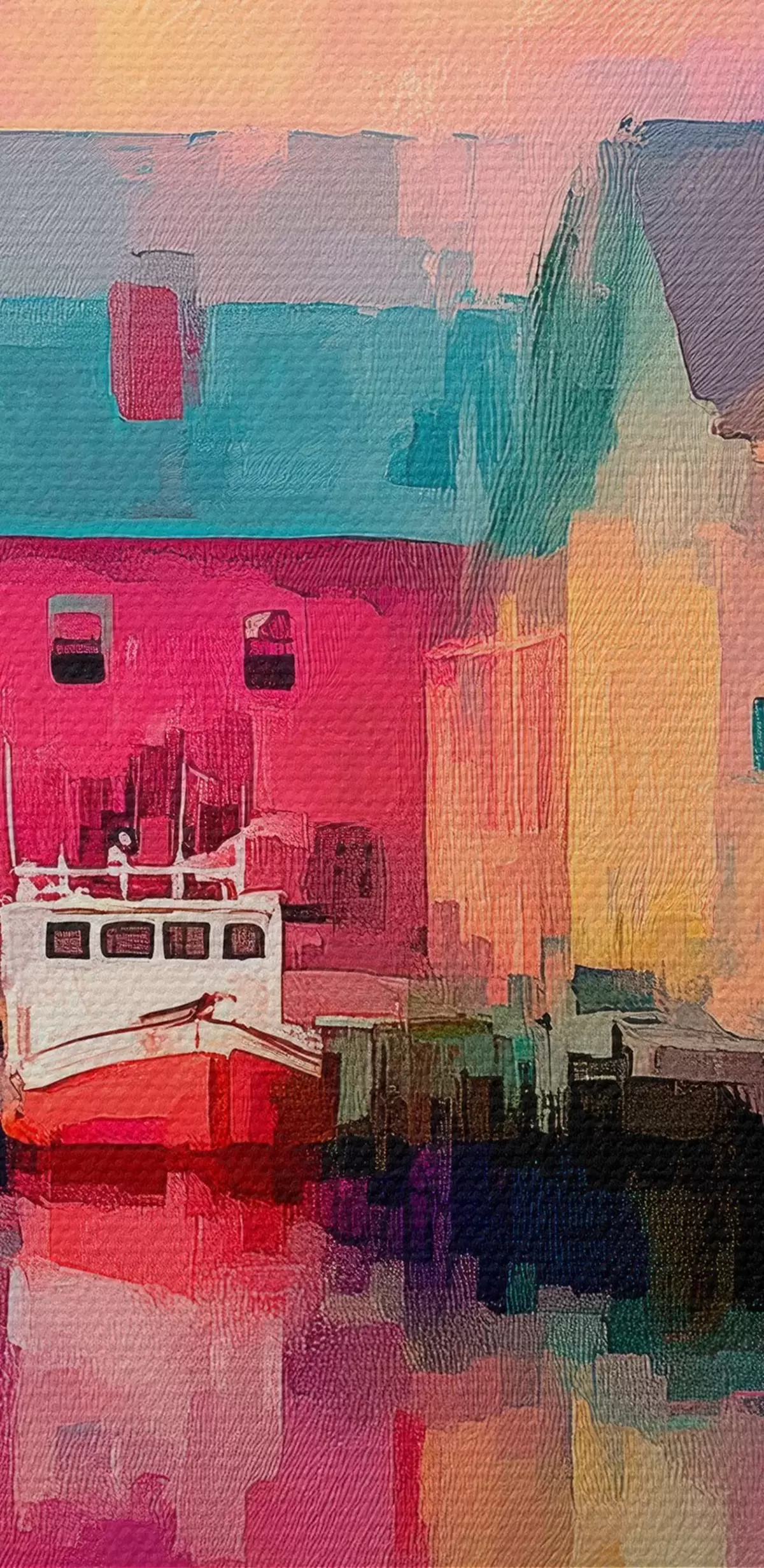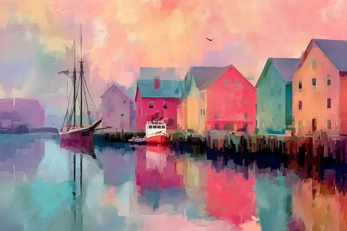 Wandbilder Bunte Häuser am Wasser im Pinselstrich-Stil s44837