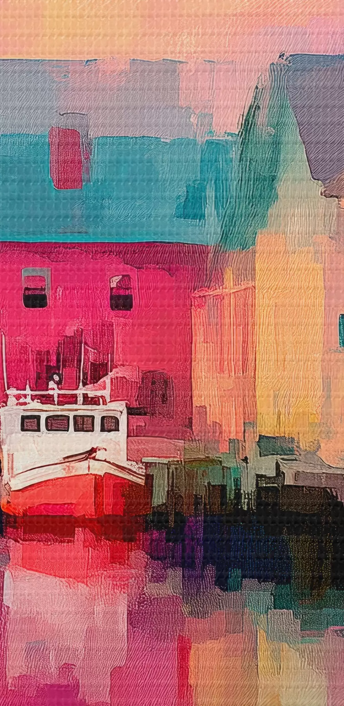 Wandbilder Bunte Häuser am Wasser im Pinselstrich-Stil Art. s44837