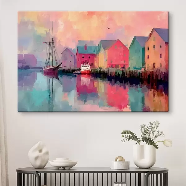 Wandbilder Bunte Häuser am Wasser im Pinselstrich-Stil s44837