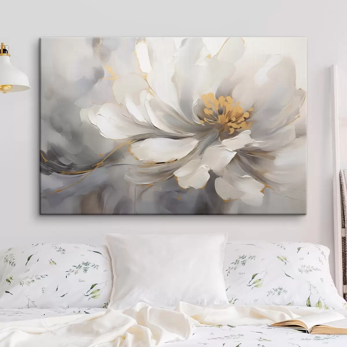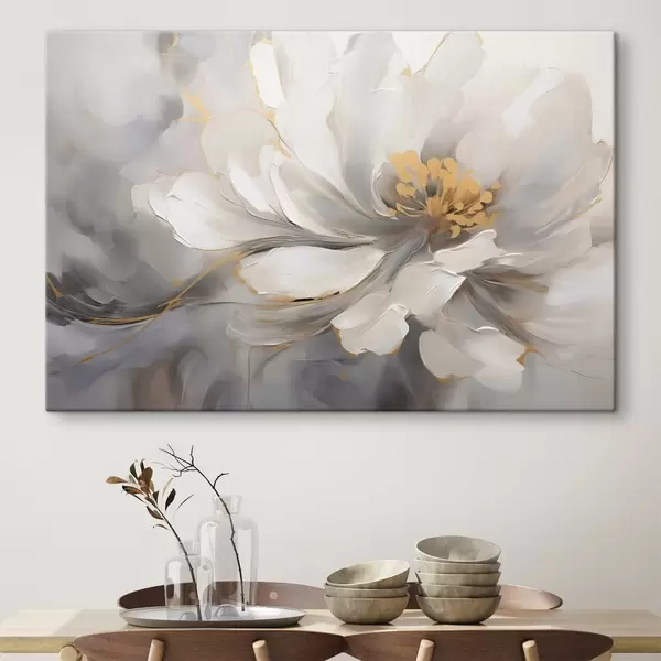 Wandbilder Weiße Blume mit Akzenten im abstrakten Stil Art. s44838